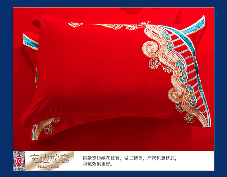 千禧婚庆专供 长绒棉贡缎提花绣花婚庆套件 九五至尊
