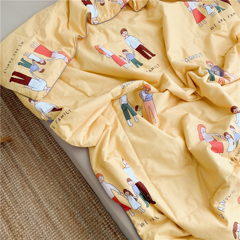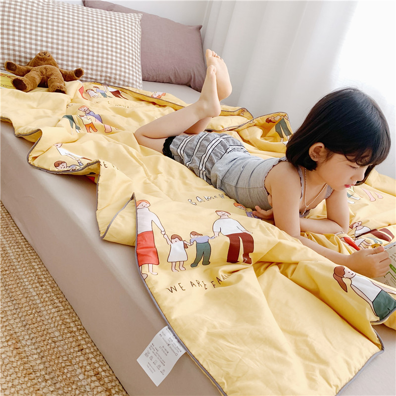 时年家纺 2019新款全棉羽丝卡通夏被 快乐一家人