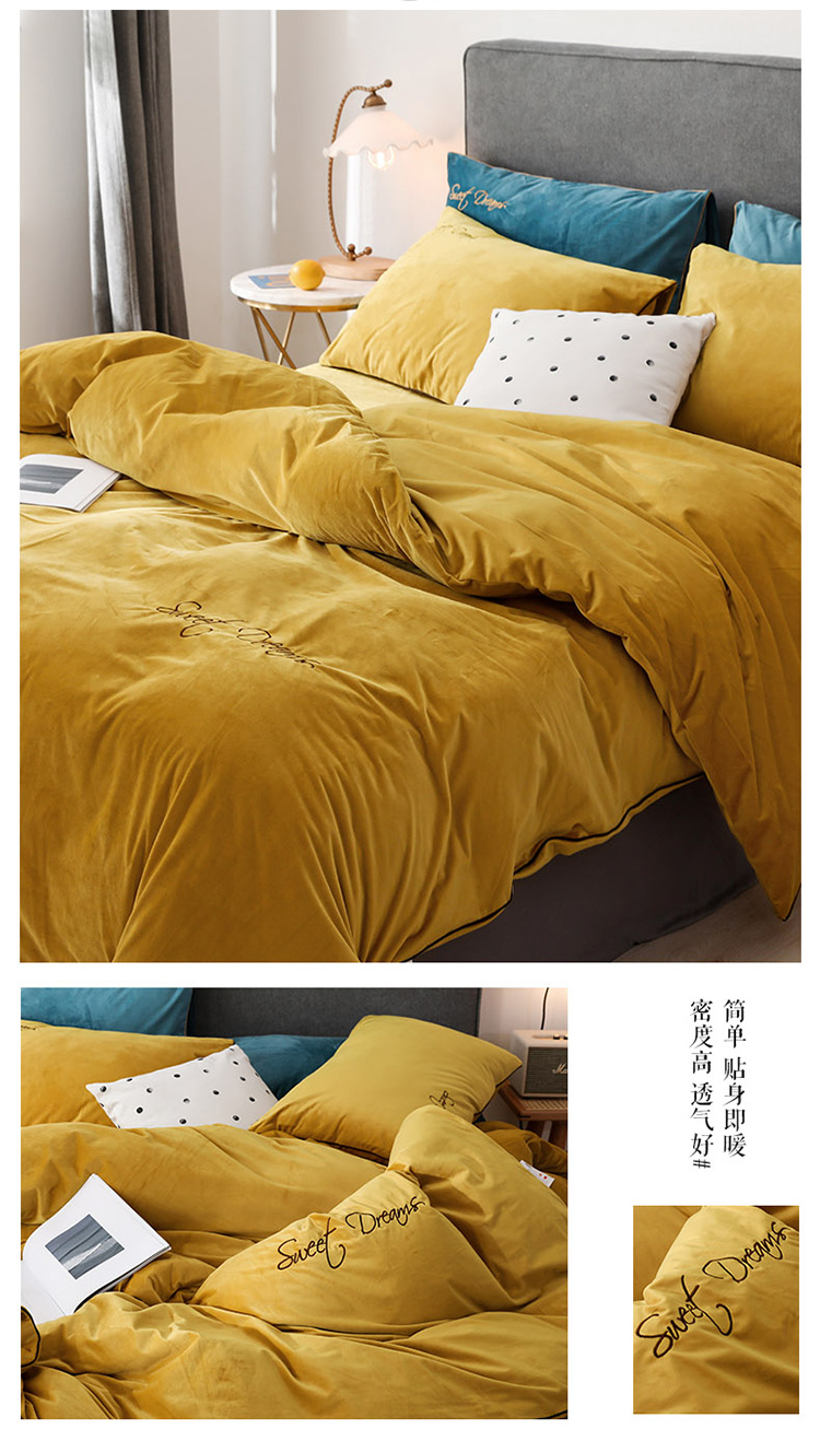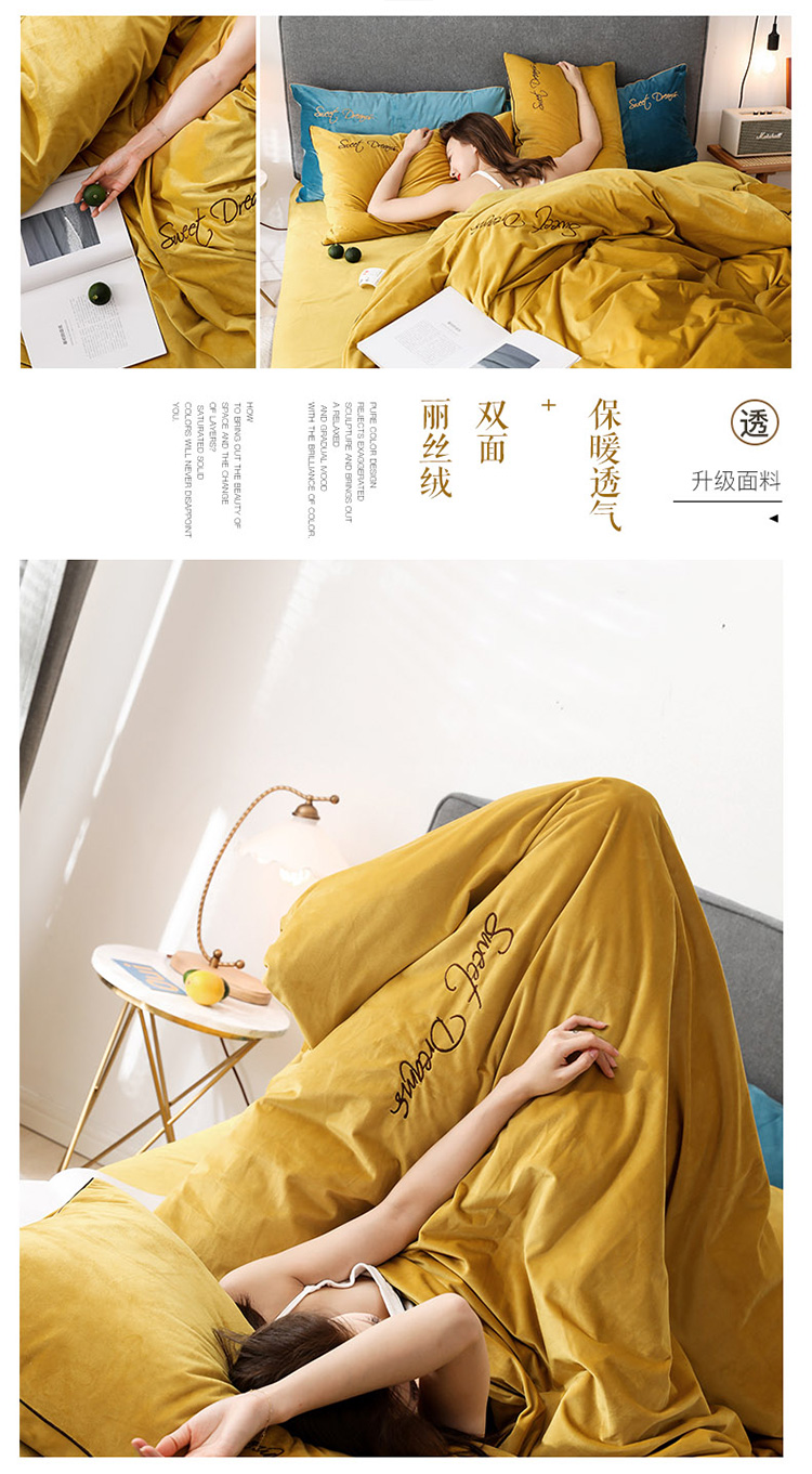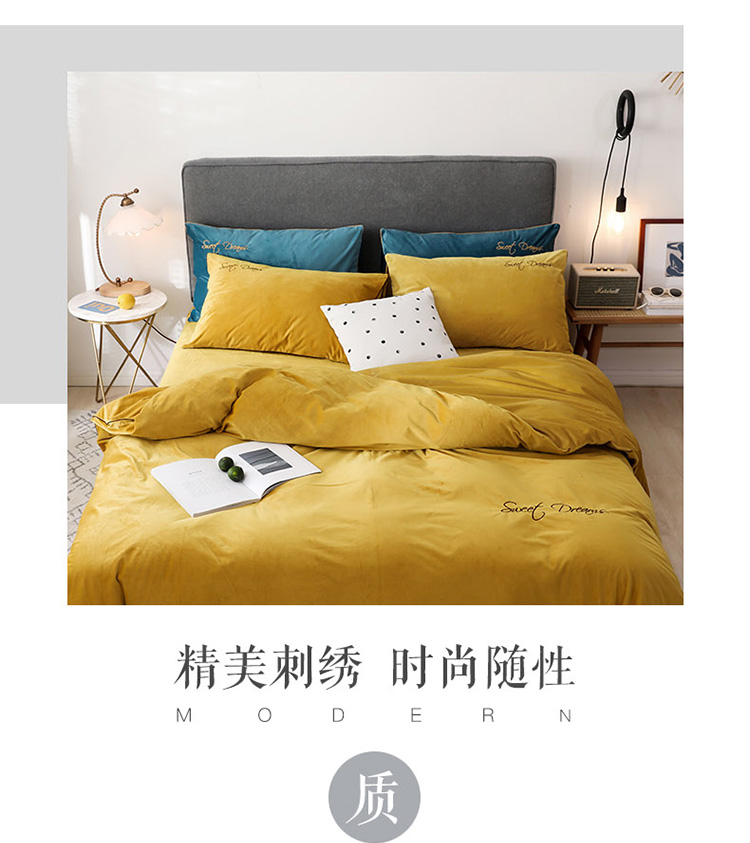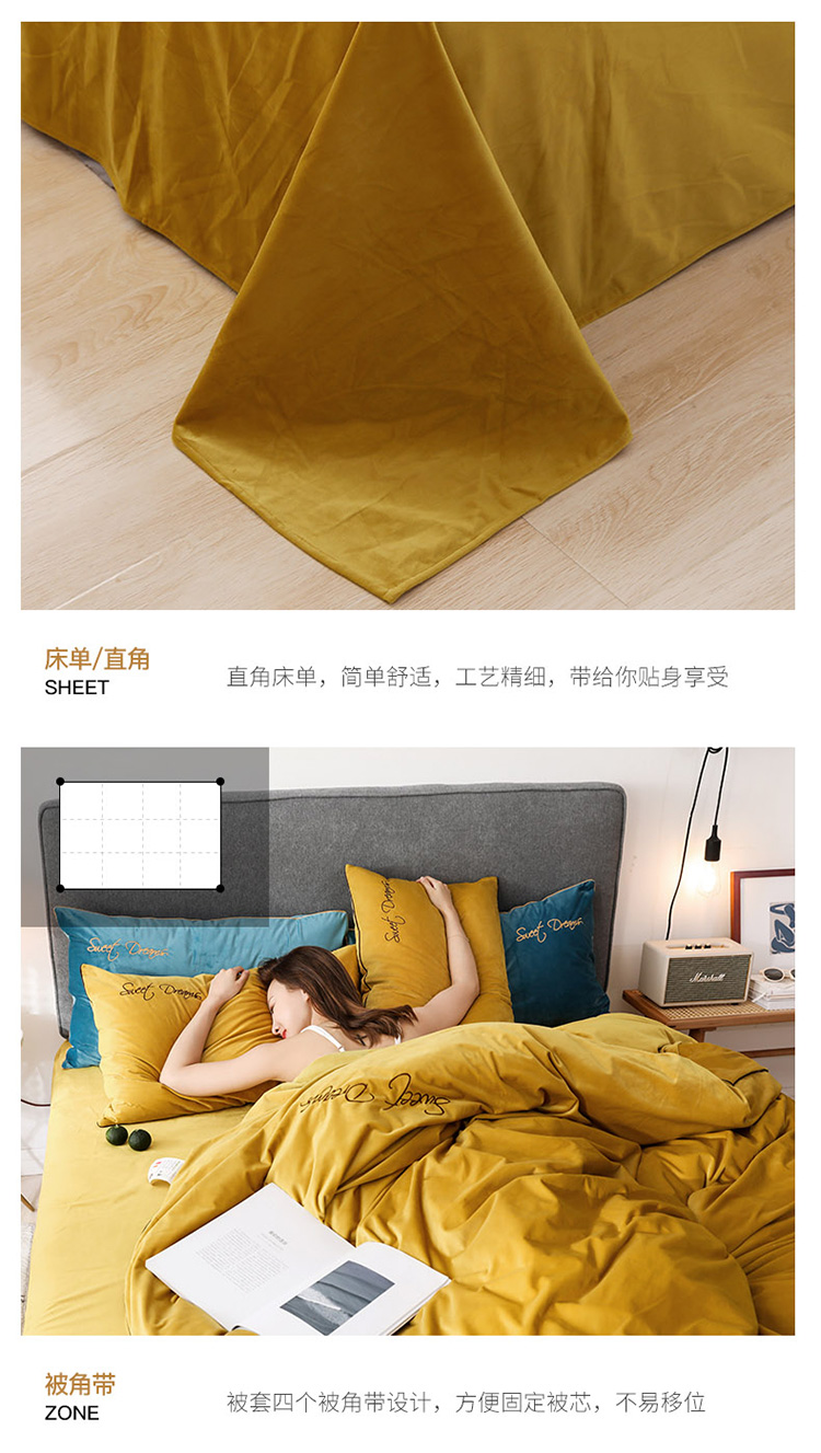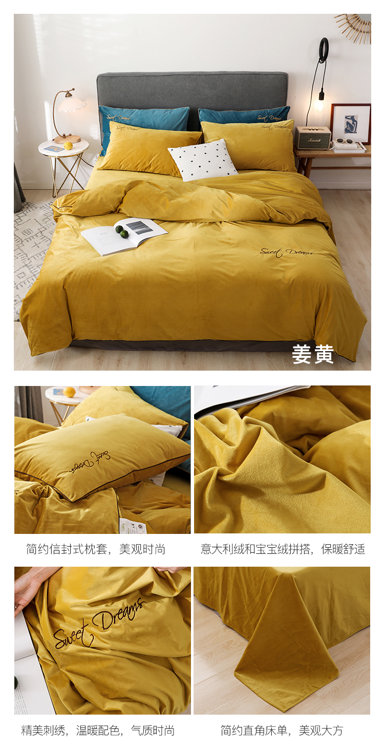 商品名称:爱缦 2019新款水晶绒丽丝绒绣花工艺款四件套 芥末黄