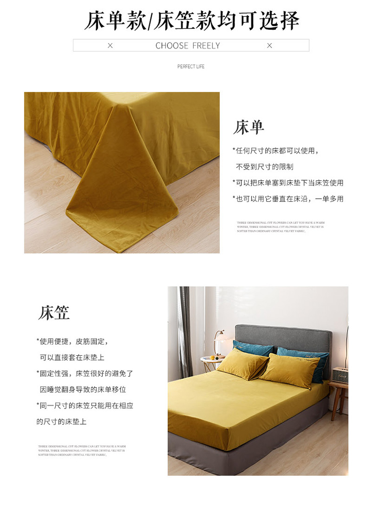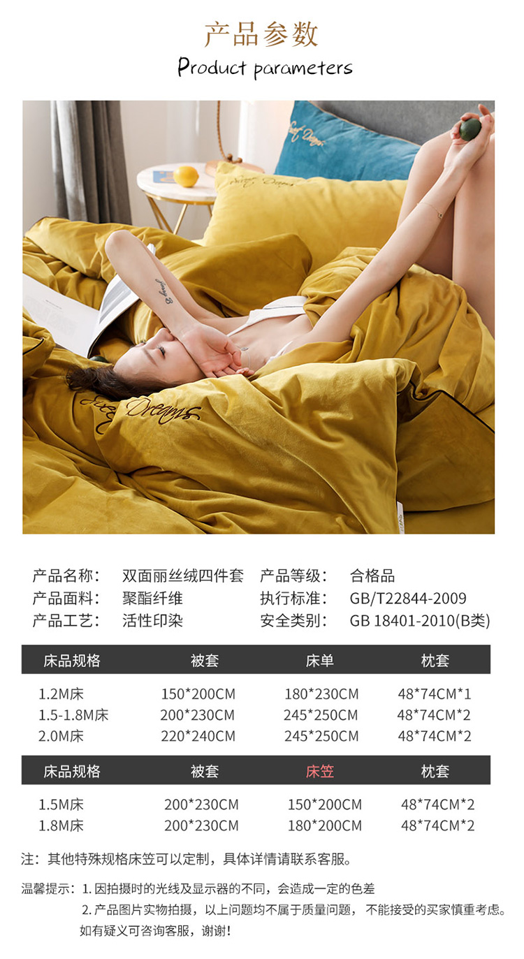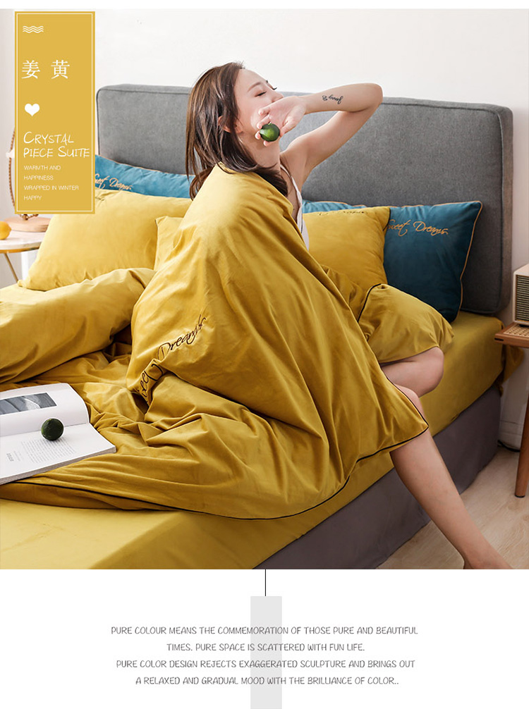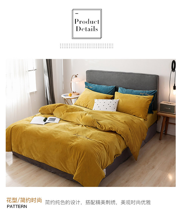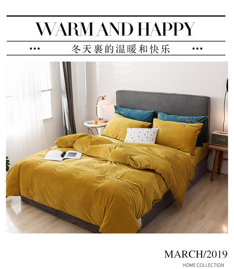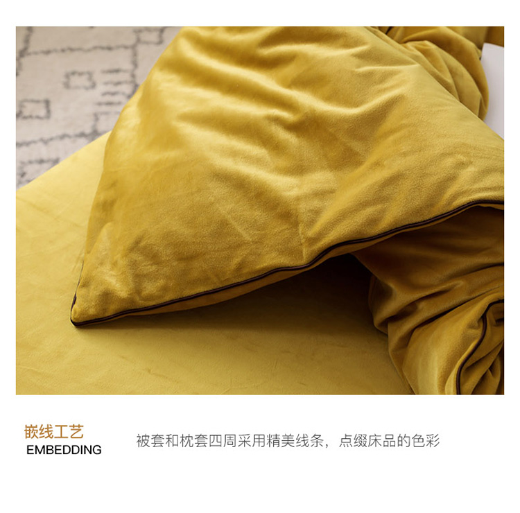 商品名称:爱缦 2019新款水晶绒丽丝绒绣花工艺款四件套 芥末黄