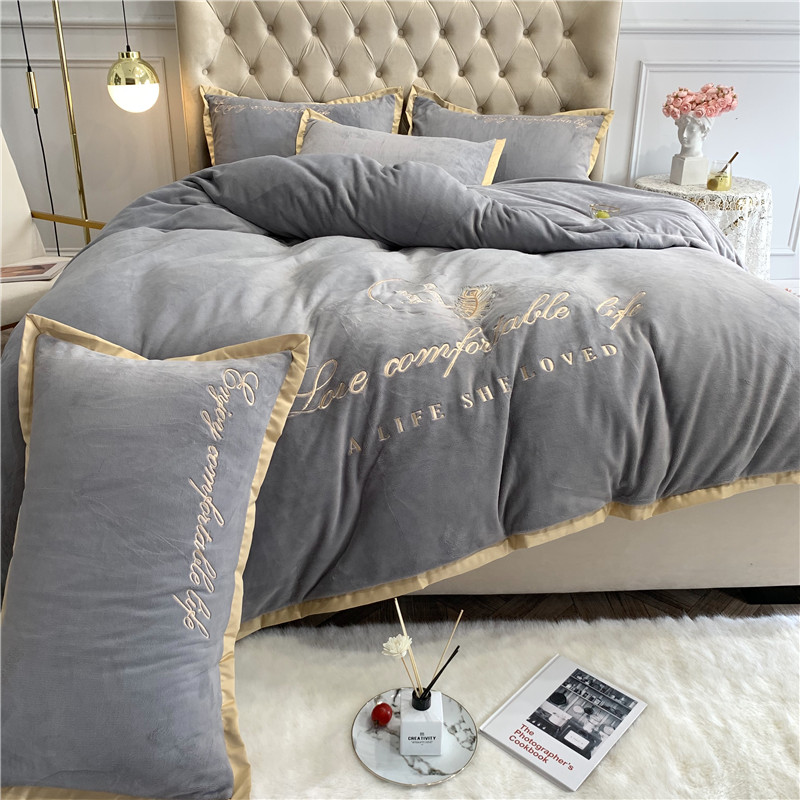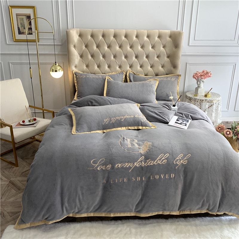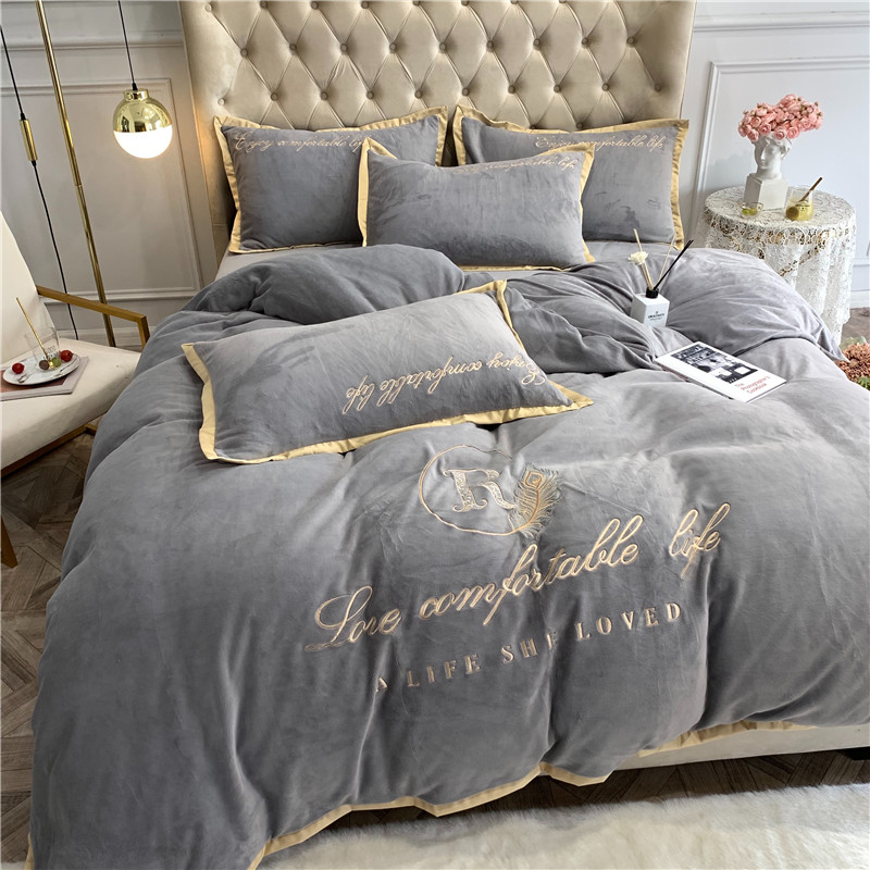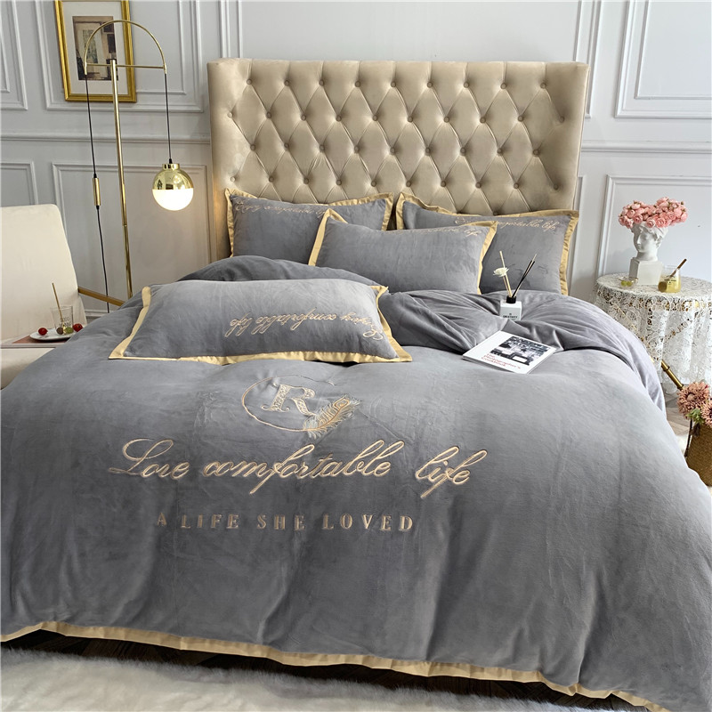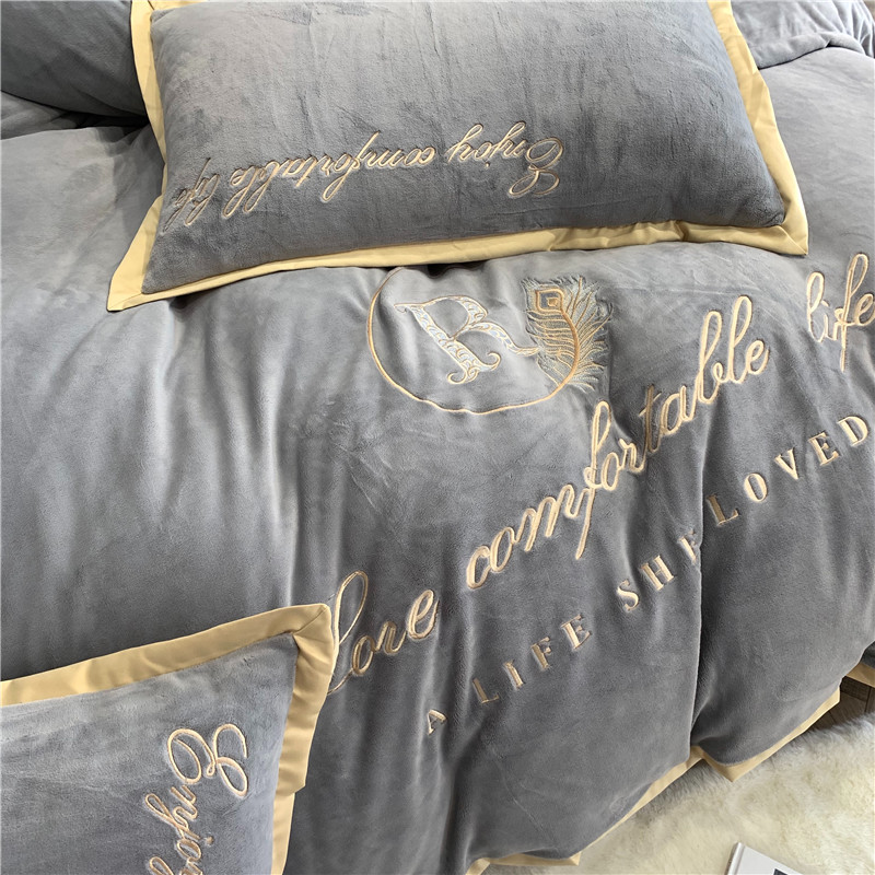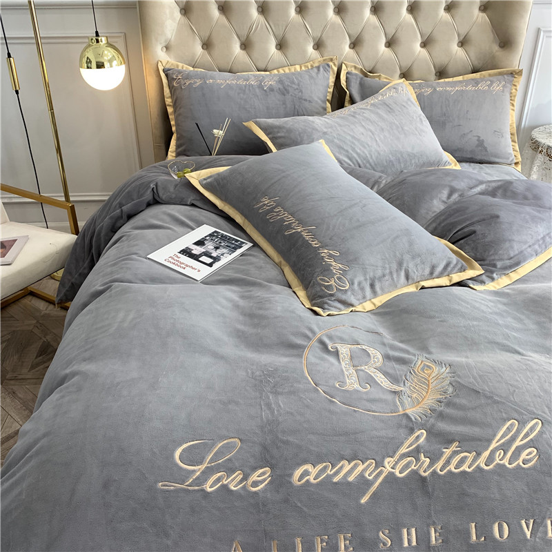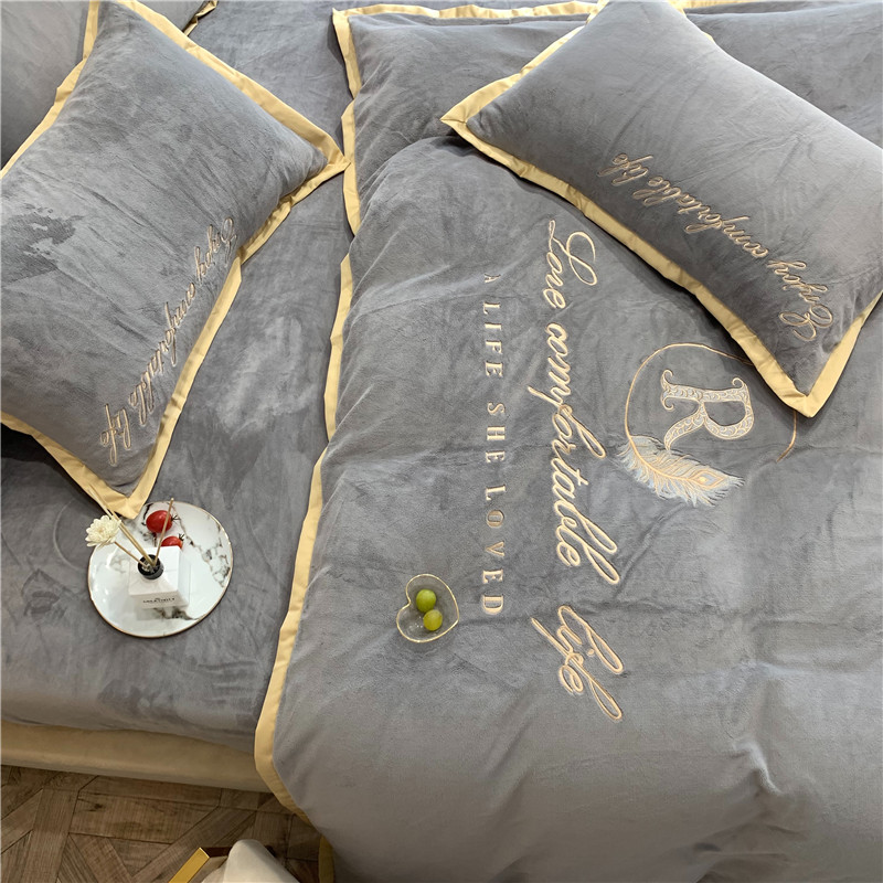 商品名称:馨蕊家居 2021秋冬轻奢牛奶绒简爱系列四件套 高级灰