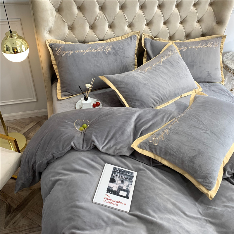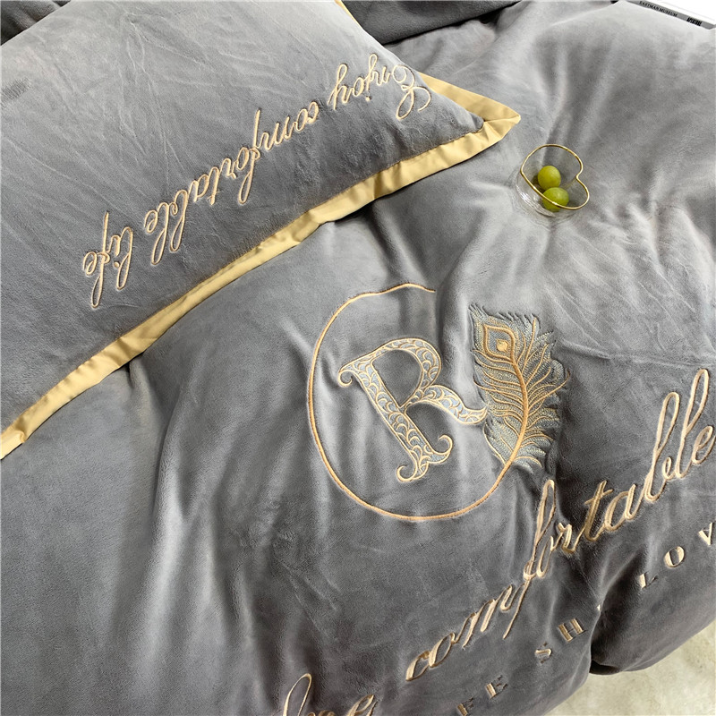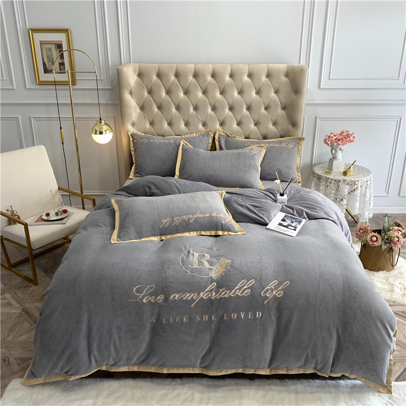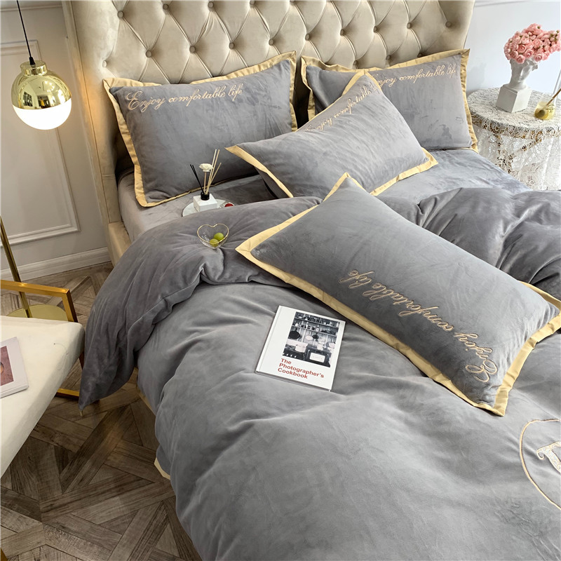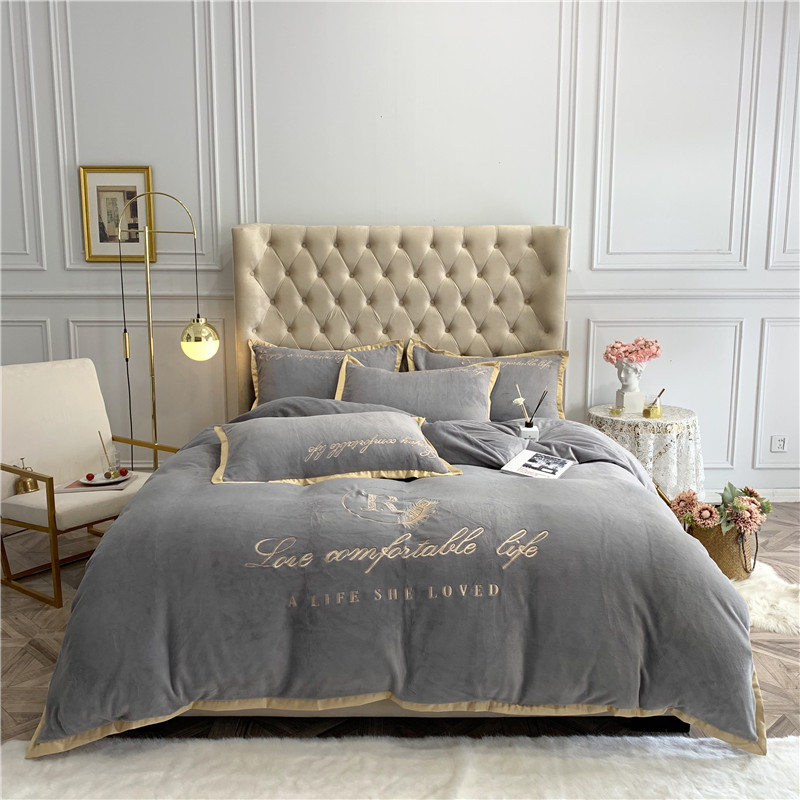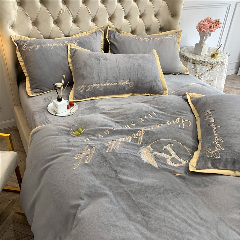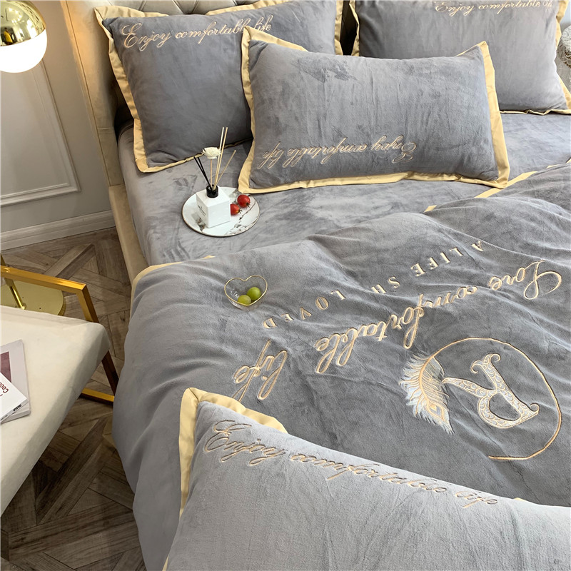 商品名称:馨蕊家居 2021秋冬轻奢牛奶绒简爱系列四件套 高级灰