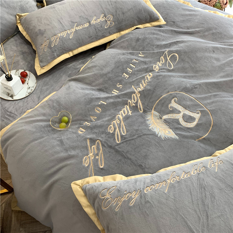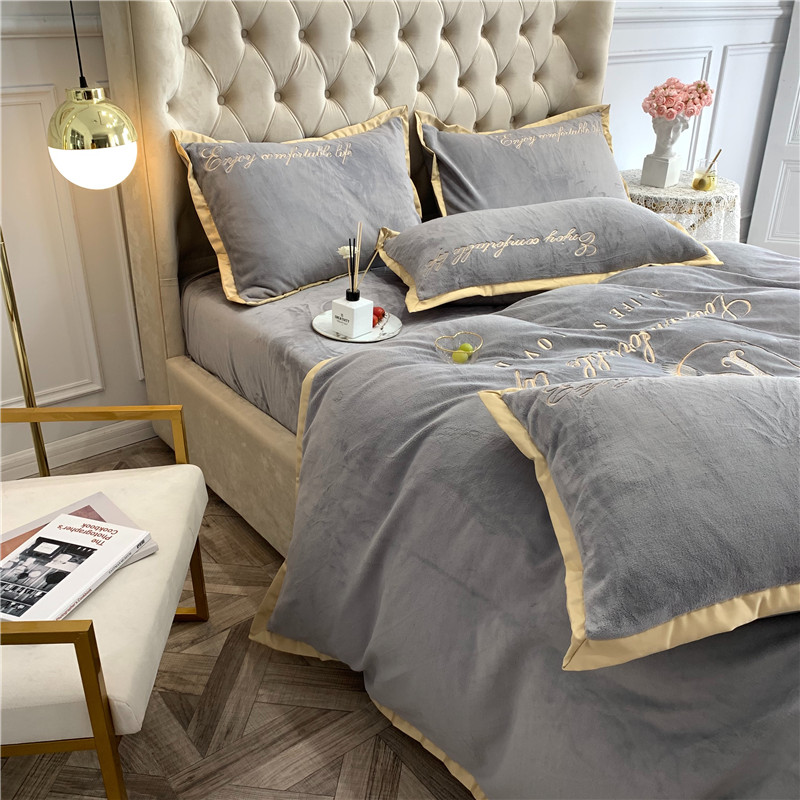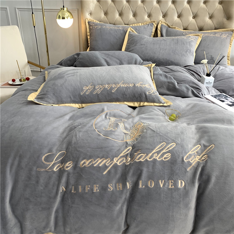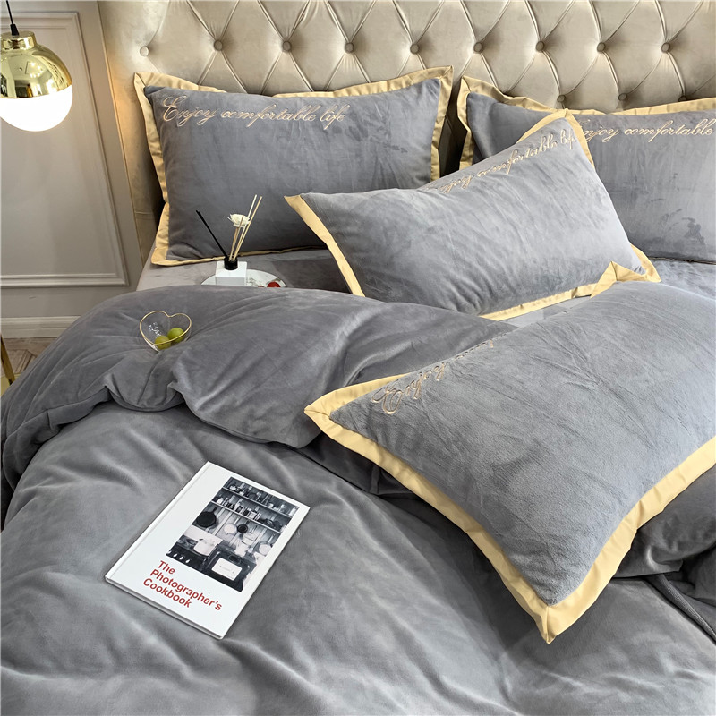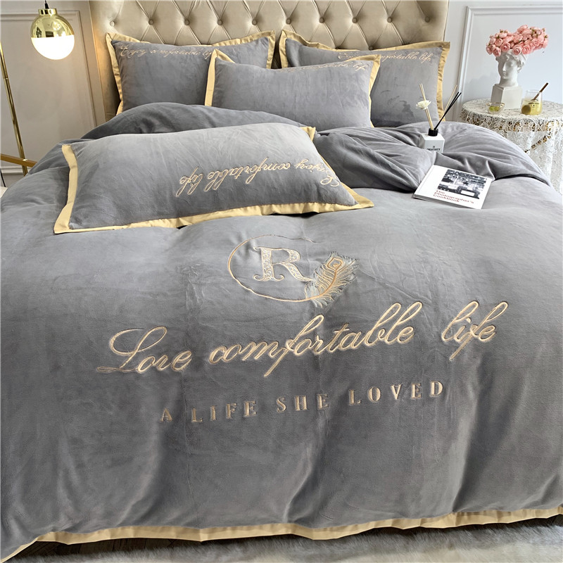 馨蕊家居 2021秋冬轻奢牛奶绒简爱系列四件套 高级灰