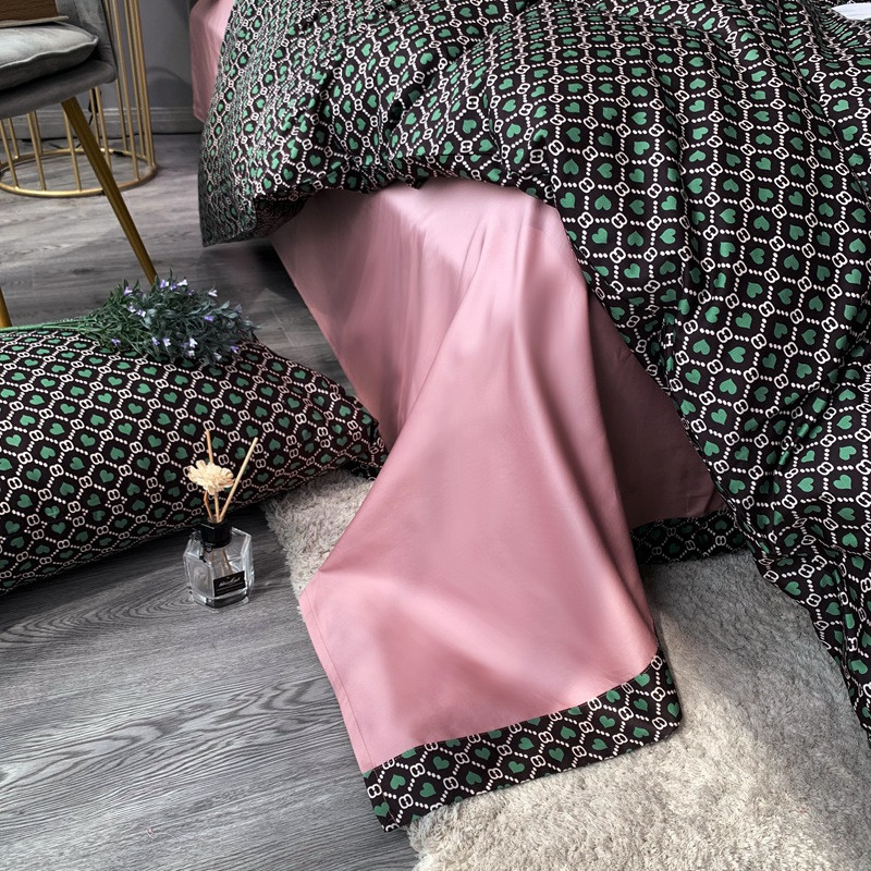 (总)优然居家纺 2025新款50支全棉纯棉印花法式双头木耳边四件套,觅棠,莫妮卡艾绿,莫妮卡罗兰,慕斯粉,薇薇安