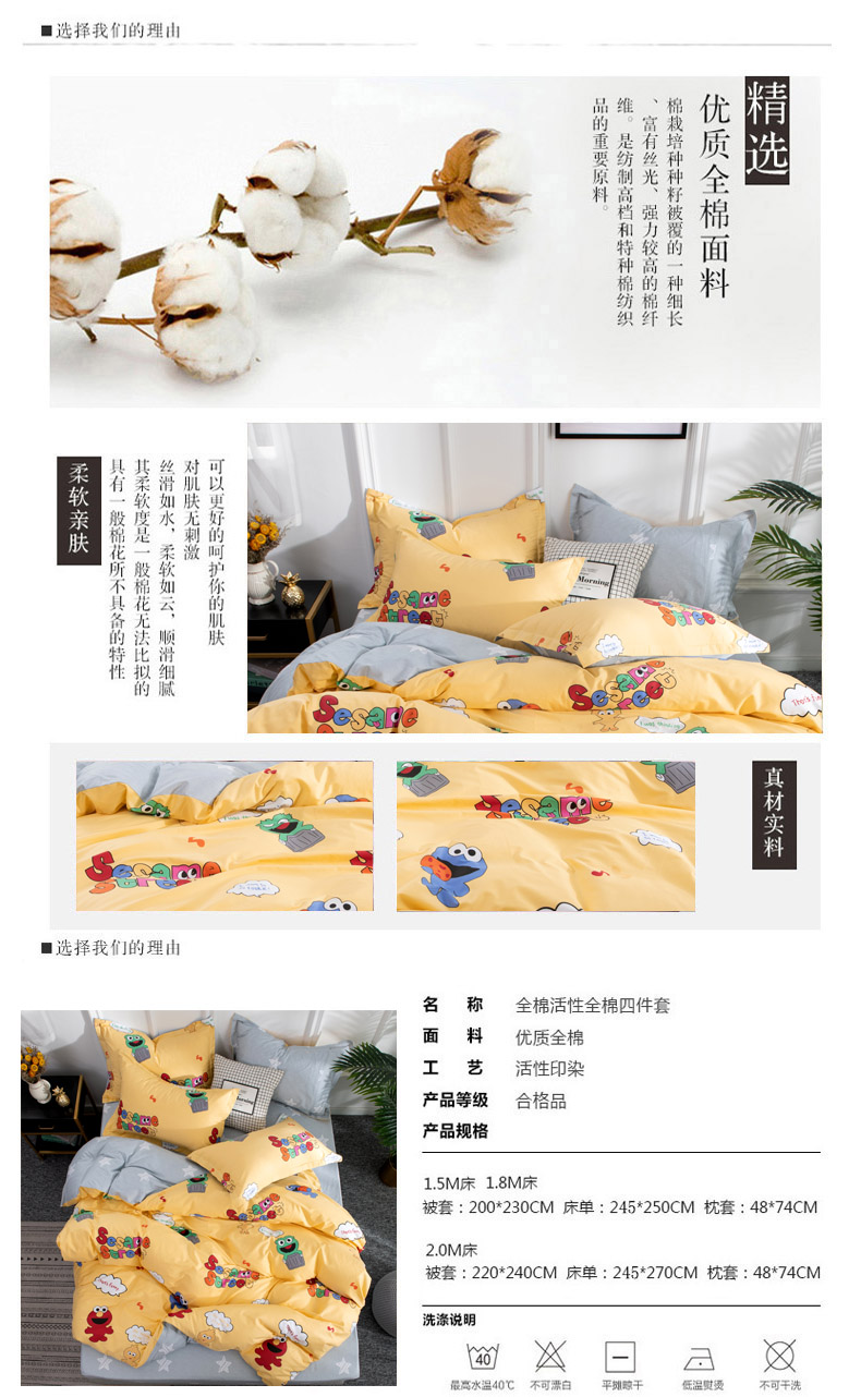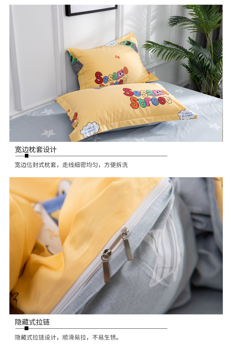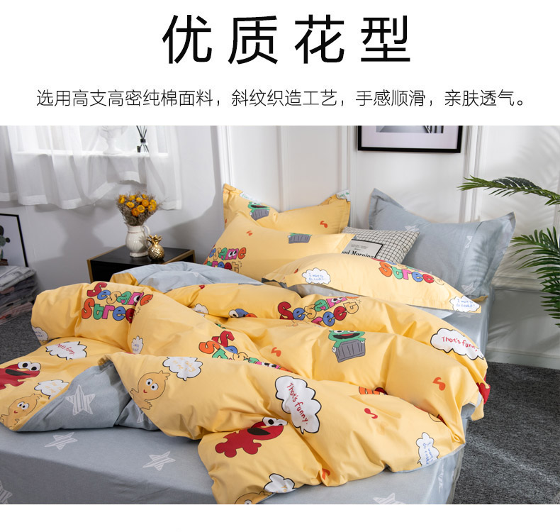 商品名称:星期三 2020春夏新款13372四件套(加老板微信有会员价) 芝麻街-黄
