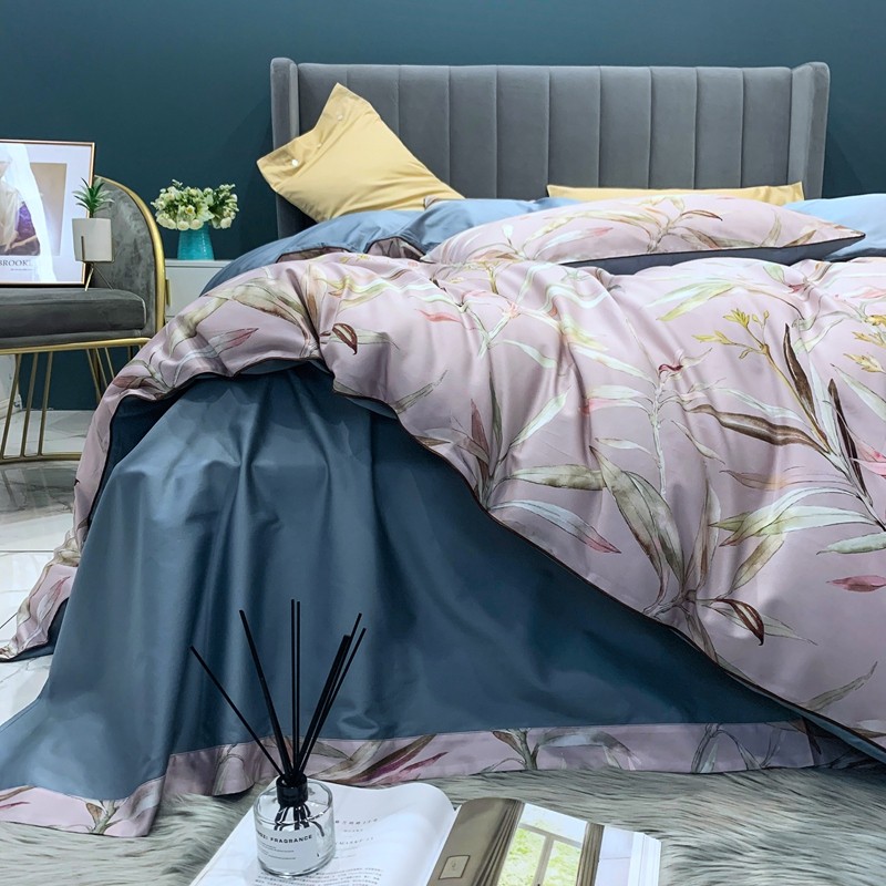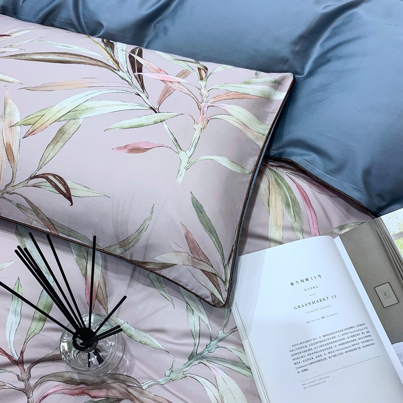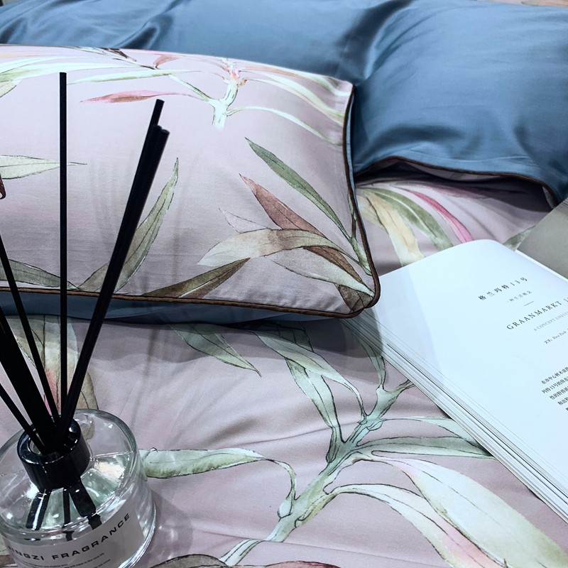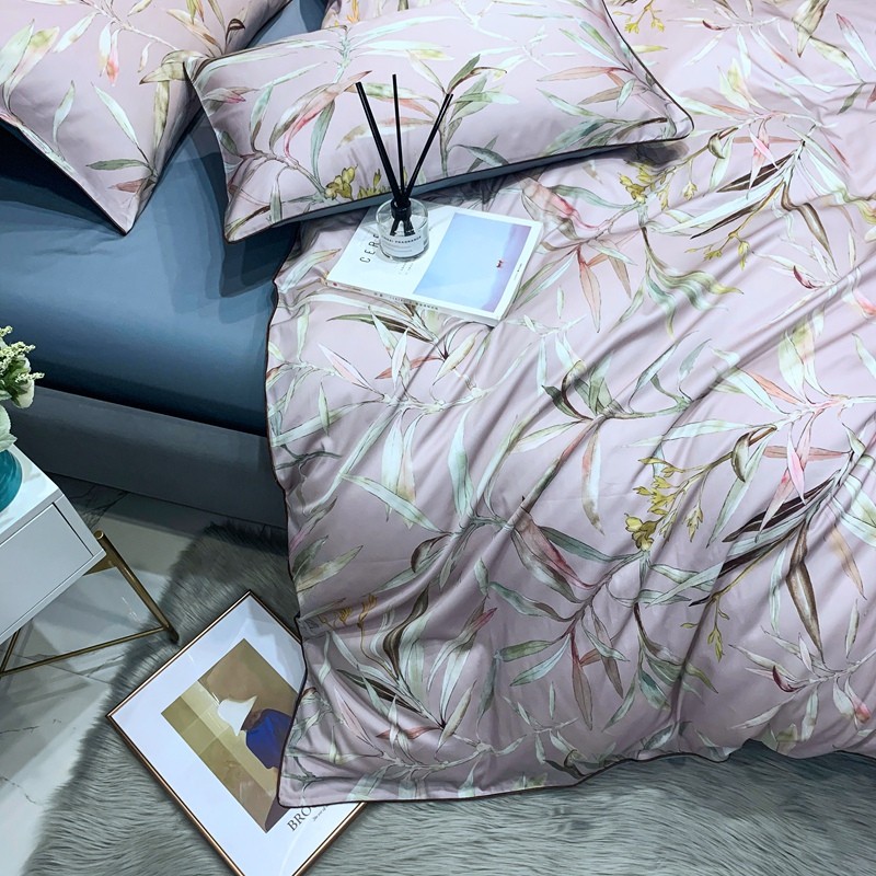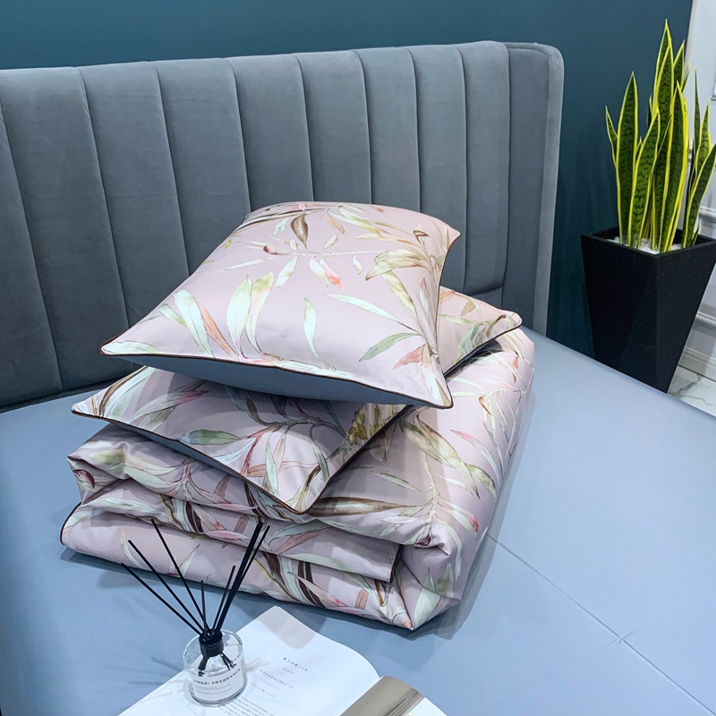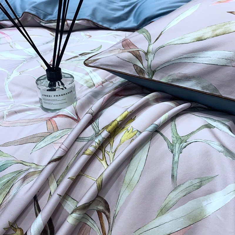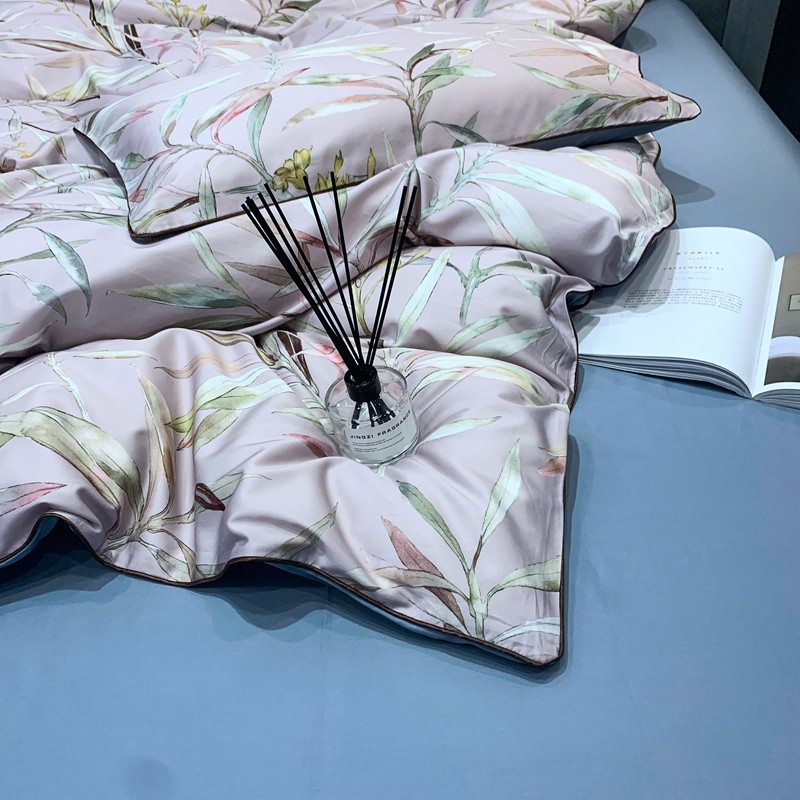 优然居2020新款60S长绒棉贡缎数码印花嵌绳四件套漫叶迷莎