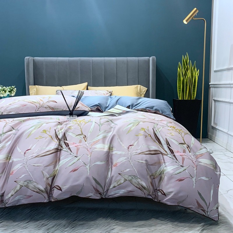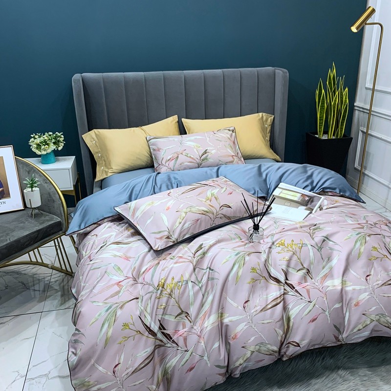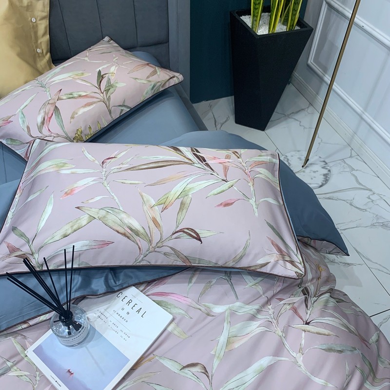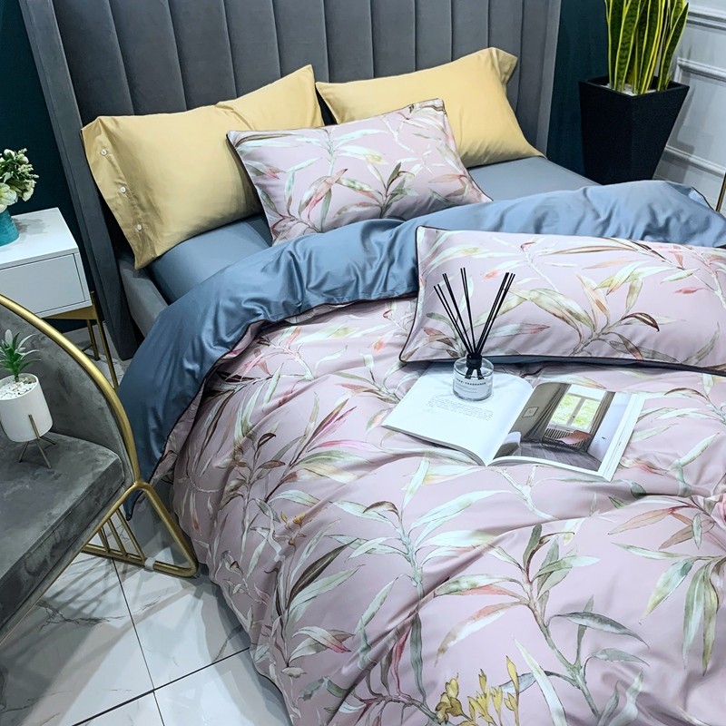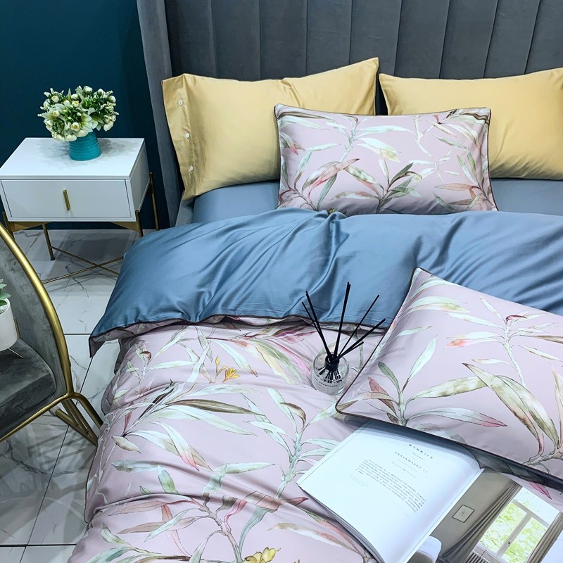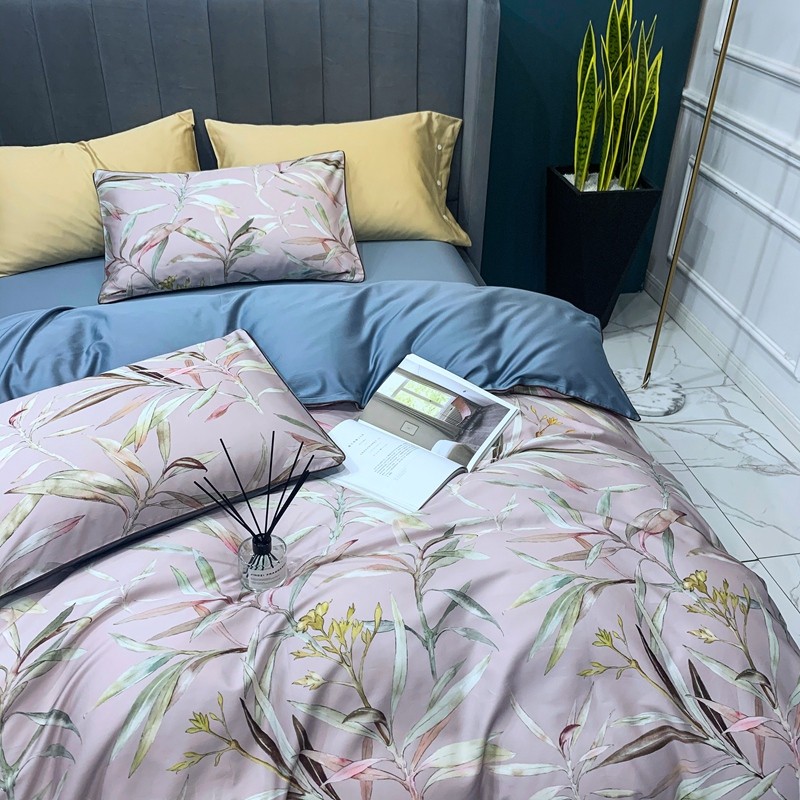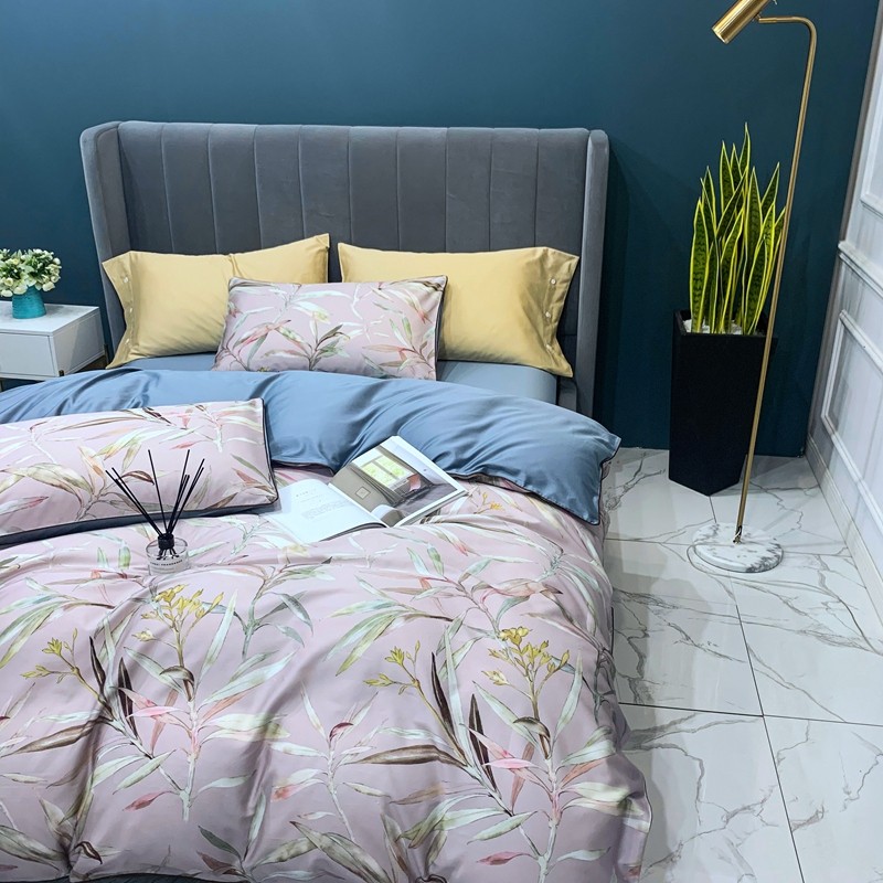 优然居2020新款60S长绒棉贡缎数码印花嵌绳四件套漫叶迷莎
