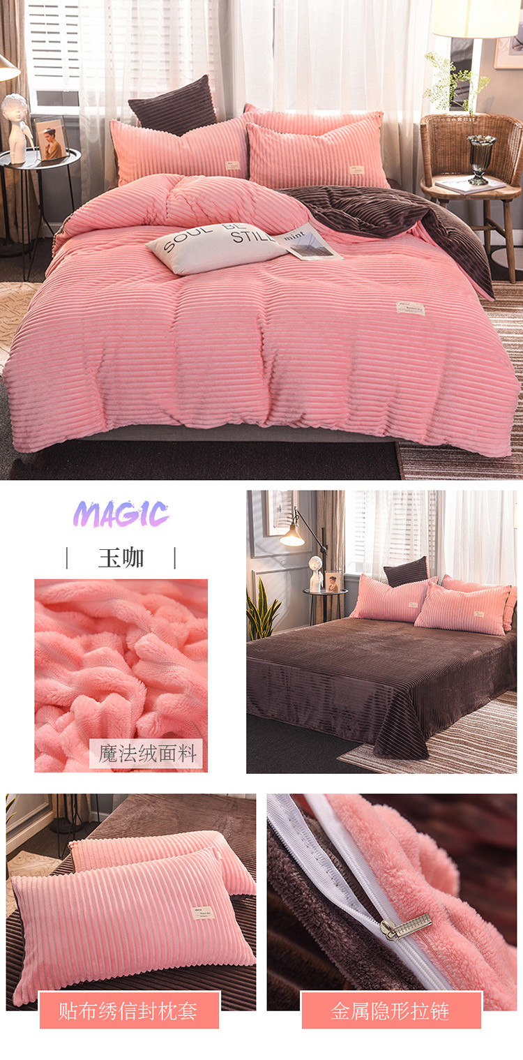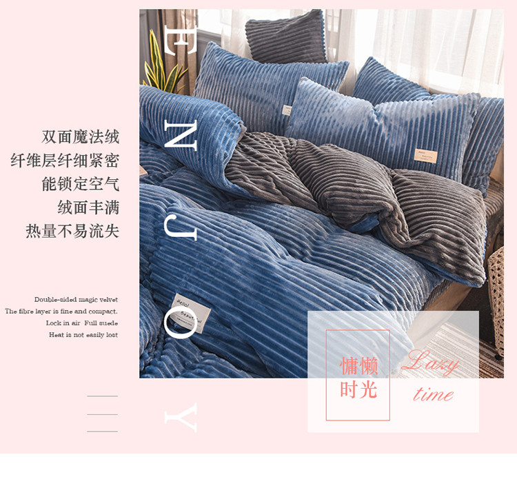(总)欧冠家纺 2025新款条纹兔毛绒牛奶绒四件套,魔幻黑,卡其,墨绿,森林绿,雪灰,棕灰