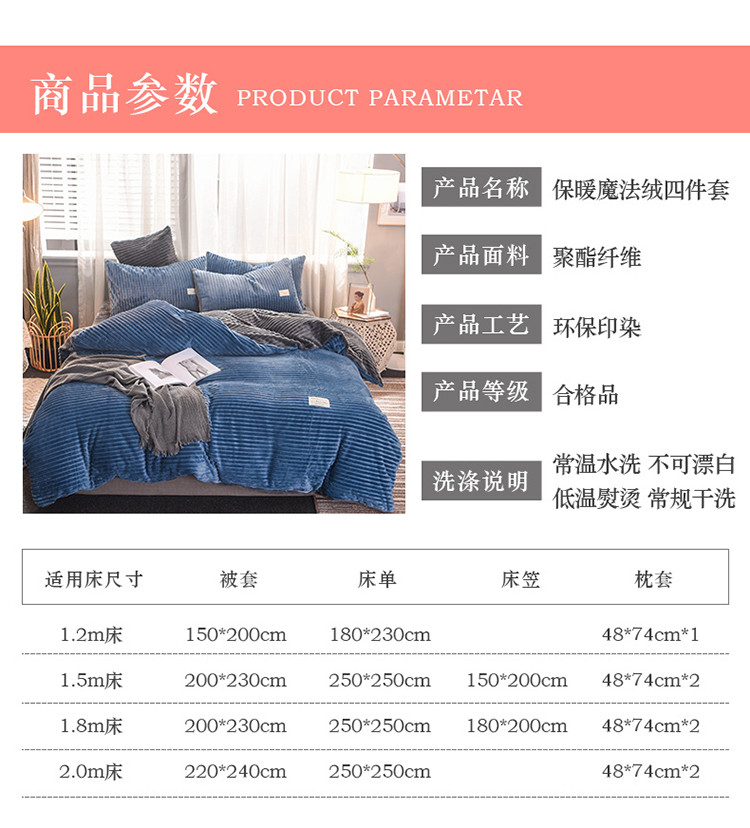 商品名称:(总)欧冠 2019秋冬魔法绒暖绒系列四件套床单款