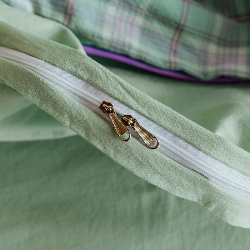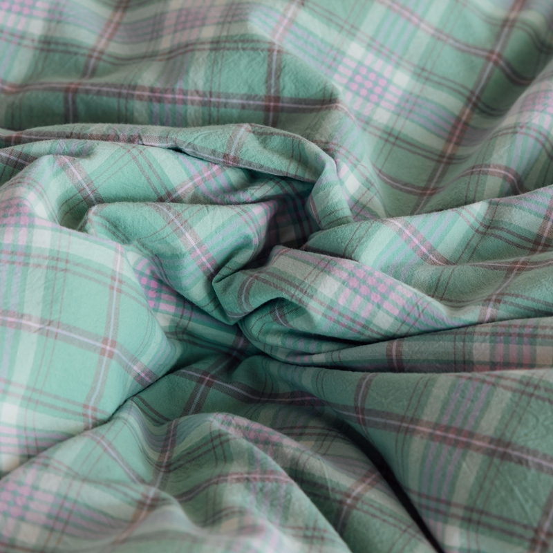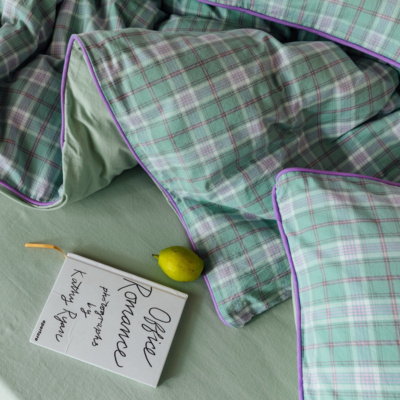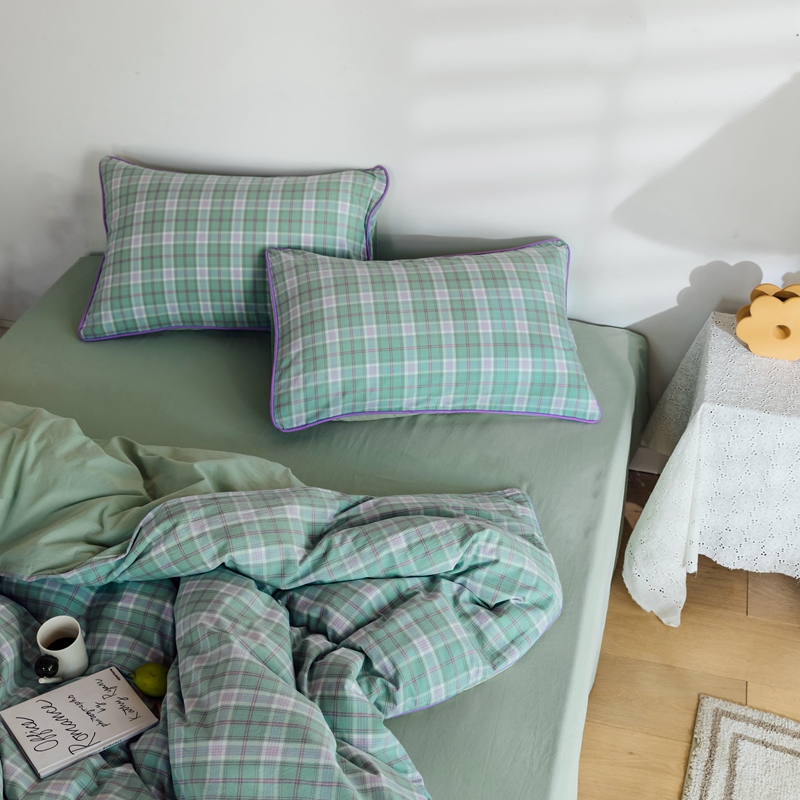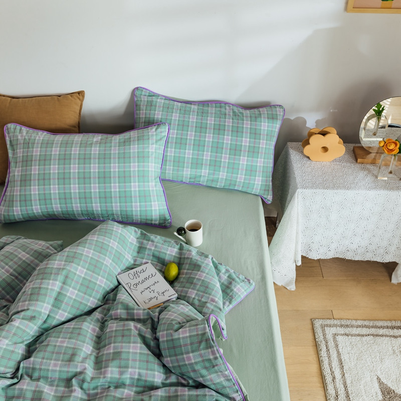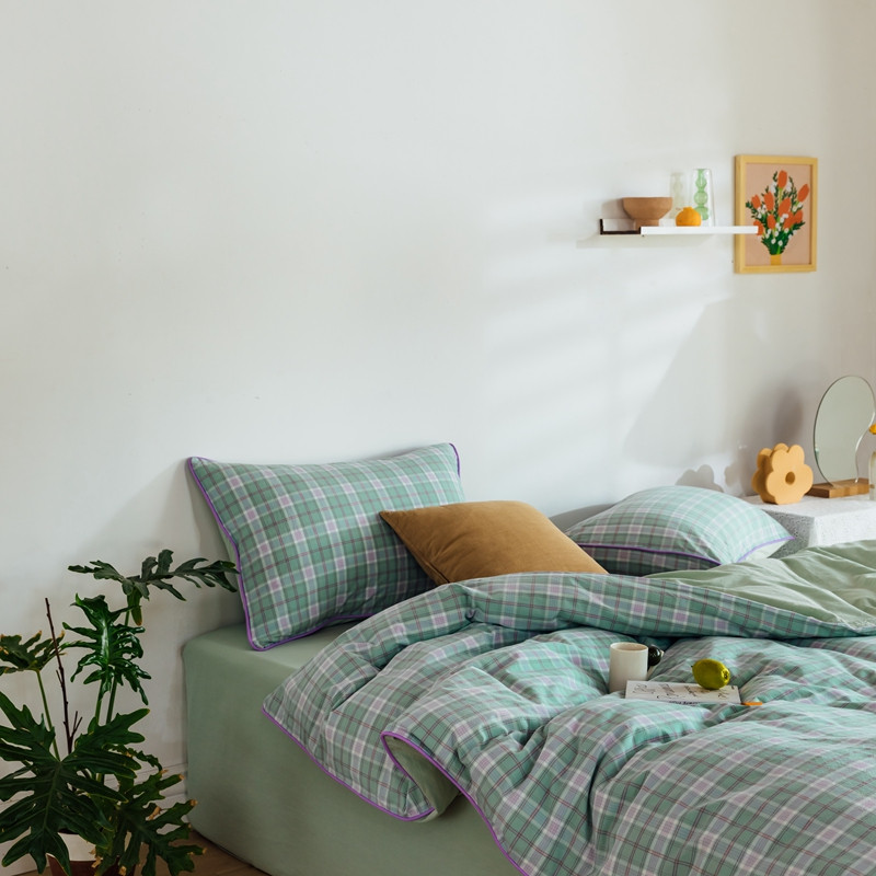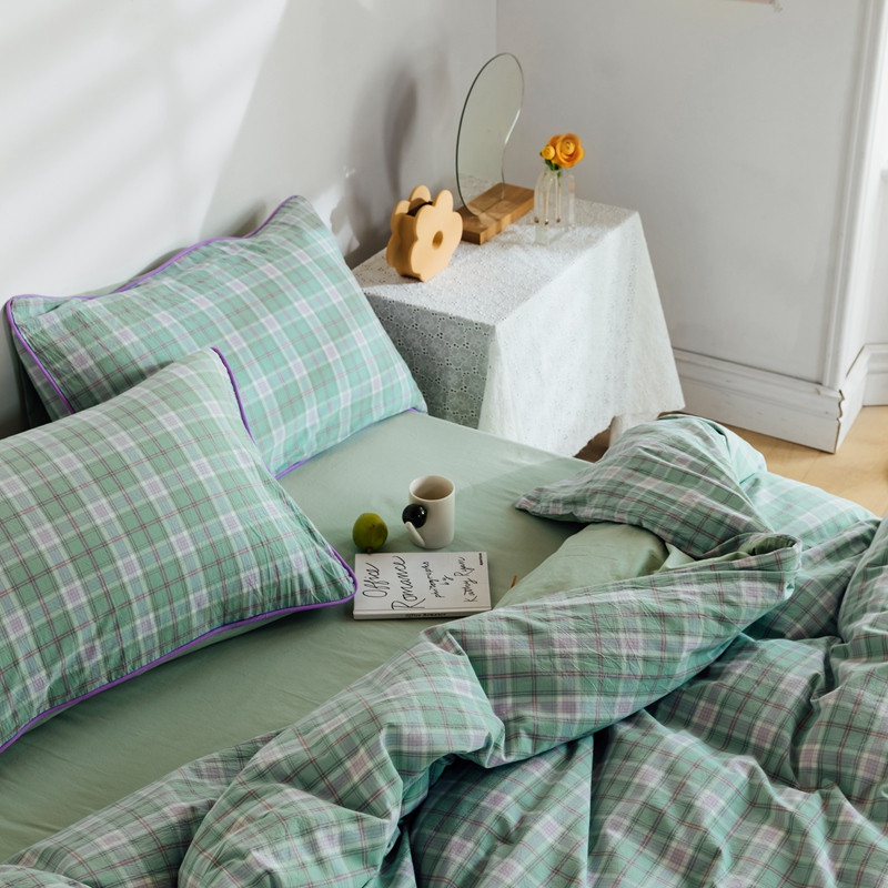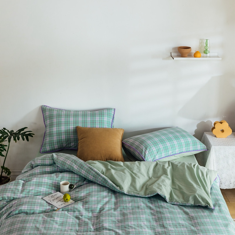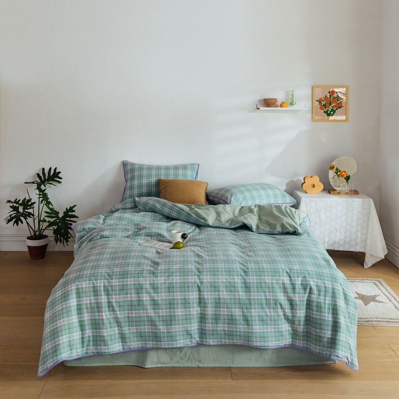 棉眠2020夏季新款32支色织水洗棉四件套 大绿格