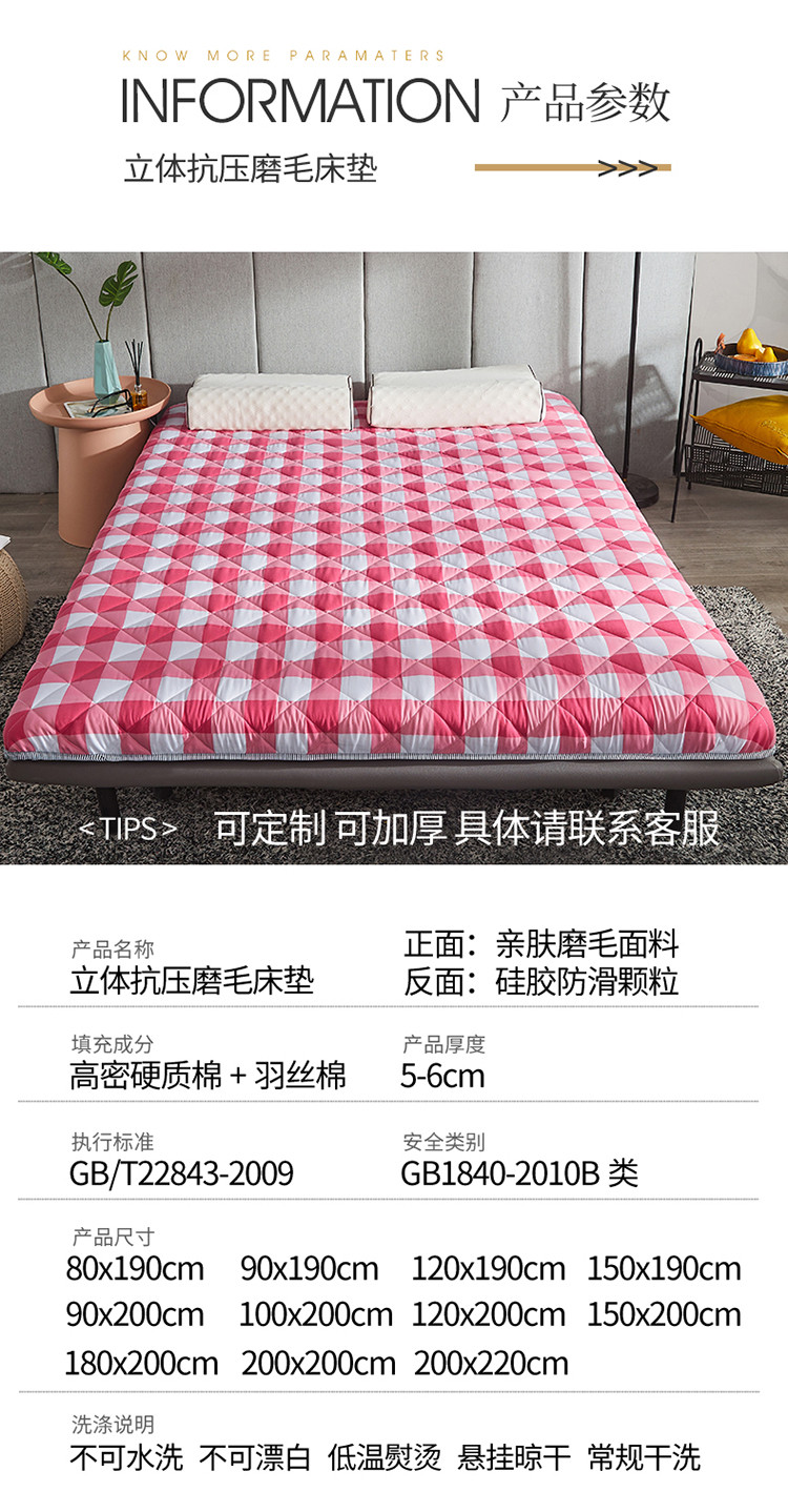 商品名称:欣罗兰 2022新款纯色单边磨毛床垫 都市 粉