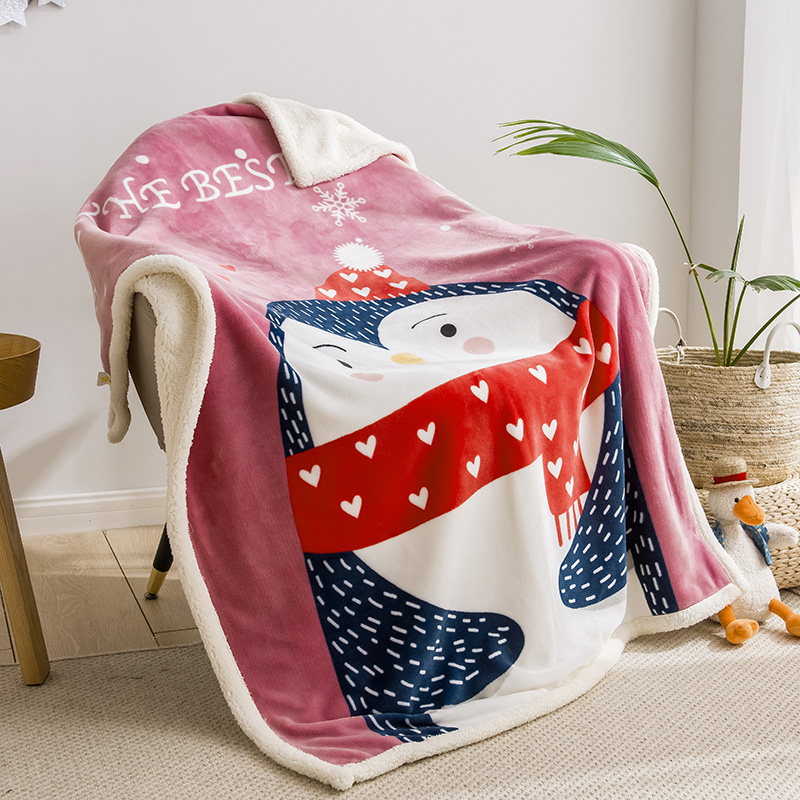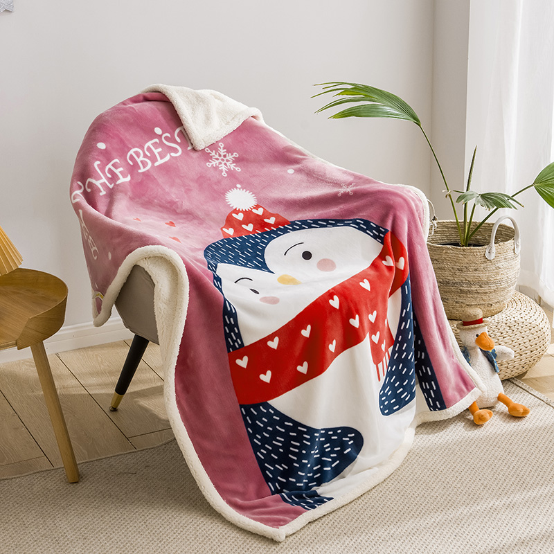 茗婷家纺 2025款羊羔绒双层加厚保暖儿童毛毯云毯供外贸跨境亚马逊TRMU 企鹅豆沙