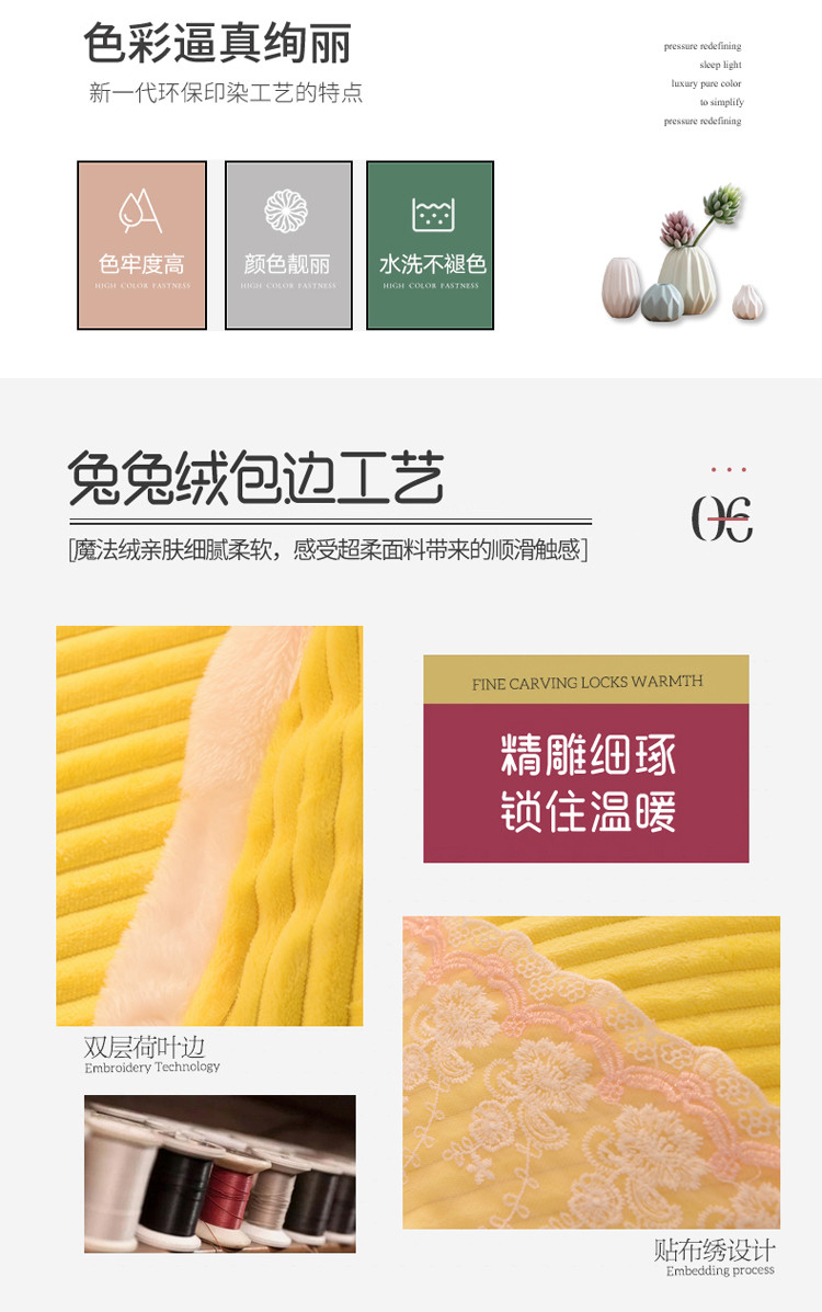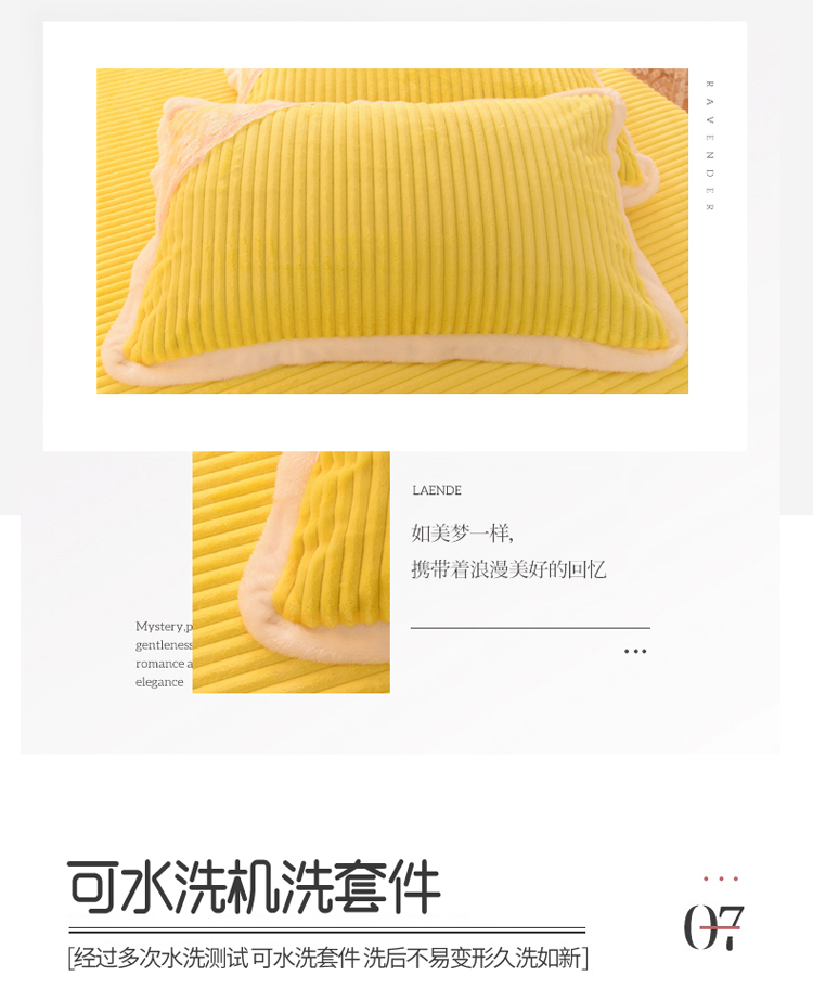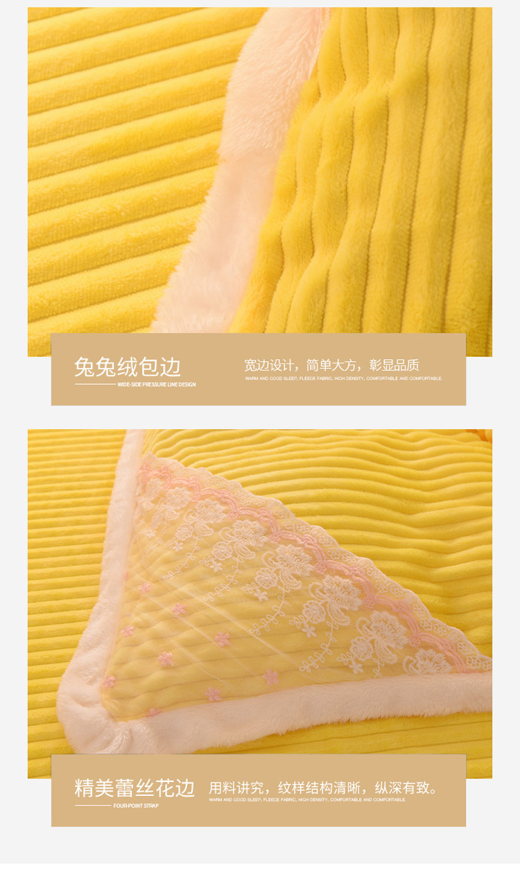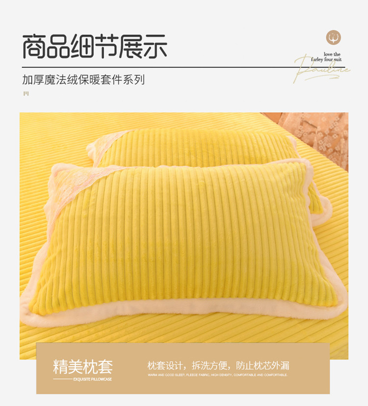商品名称:欧冠 2020双面魔法绒兔兔绒蕾丝花边四件套 柠檬黄
