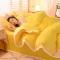 欧冠 2020双面魔法绒兔兔绒蕾丝花边四件套 柠檬黄