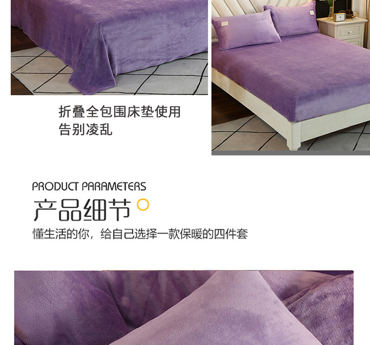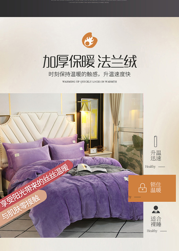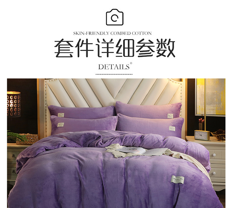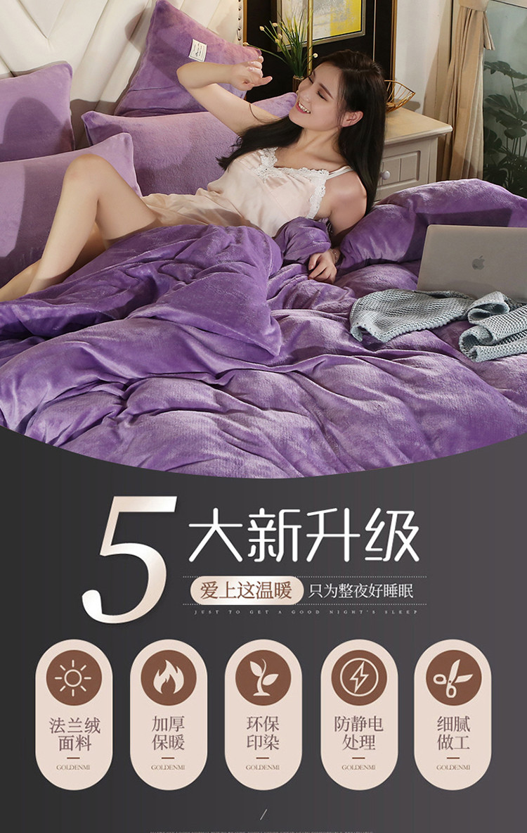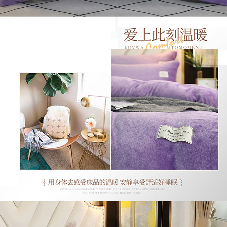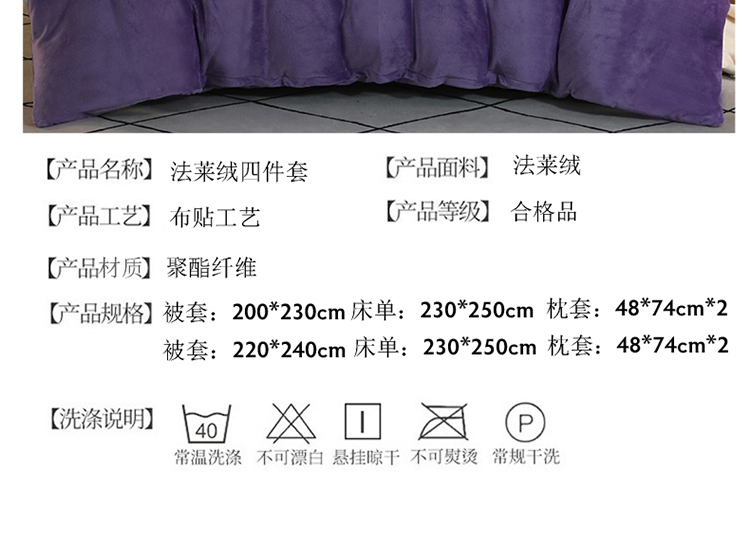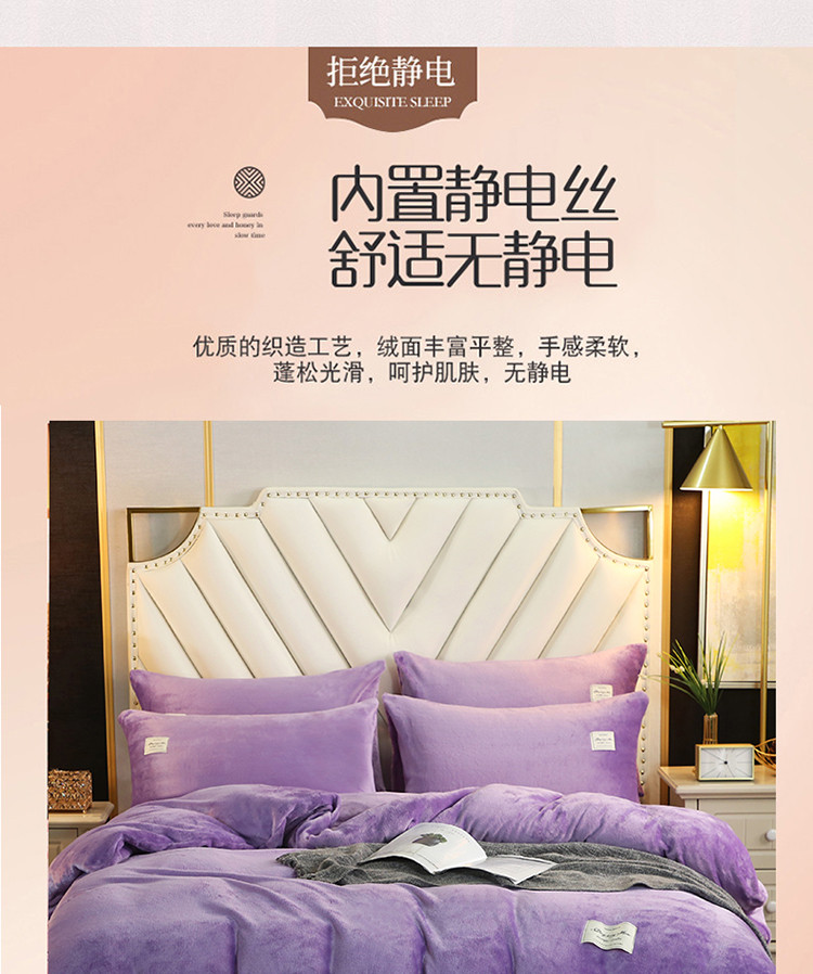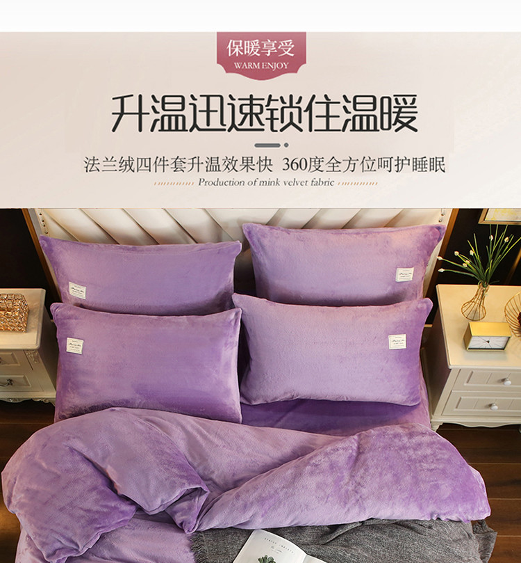 商品名称:情恒 2020新款纯色牛奶绒水晶绒法莱绒贴标四件套 魅紫