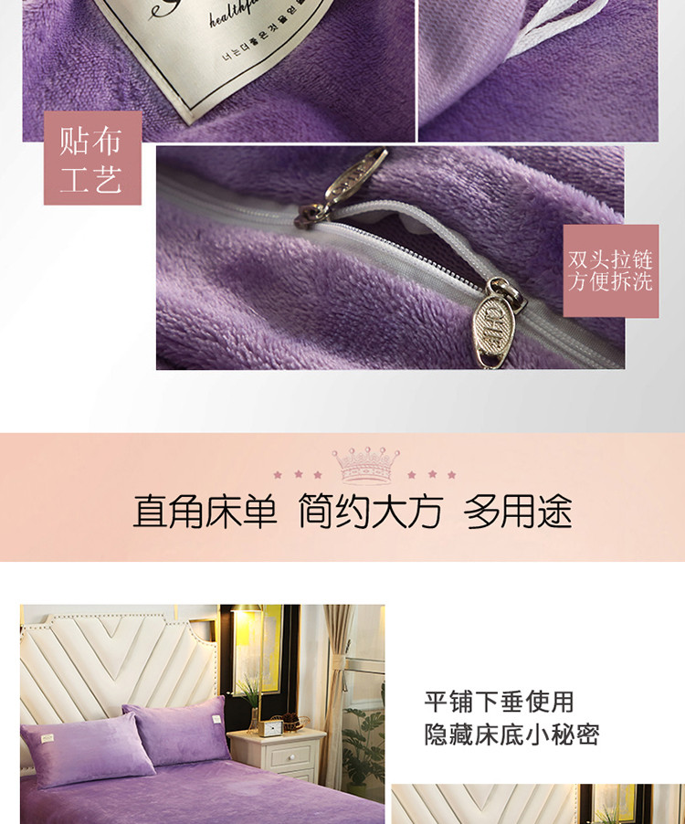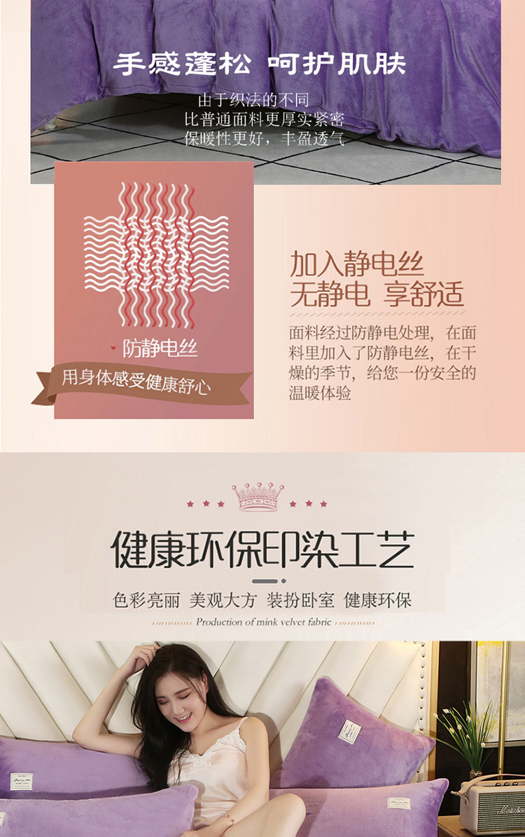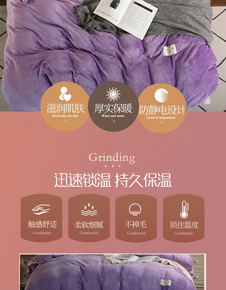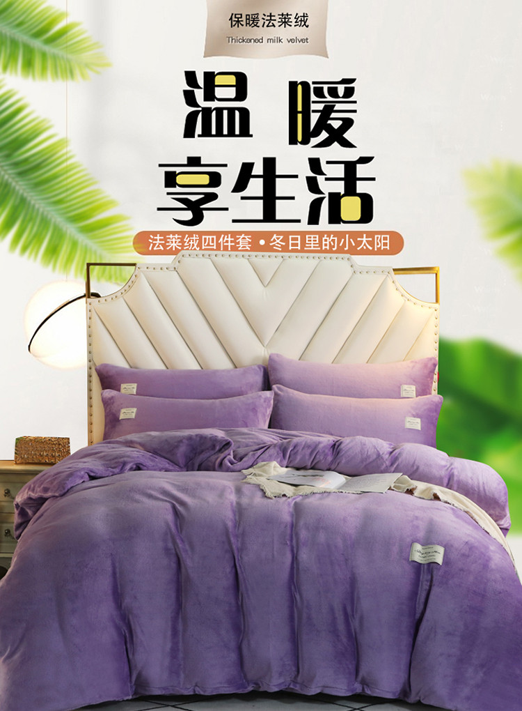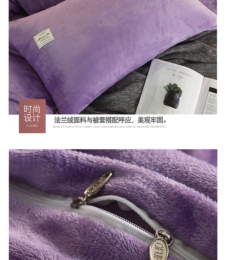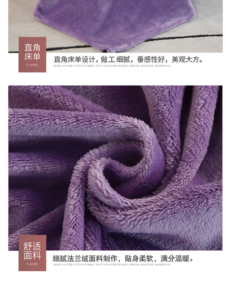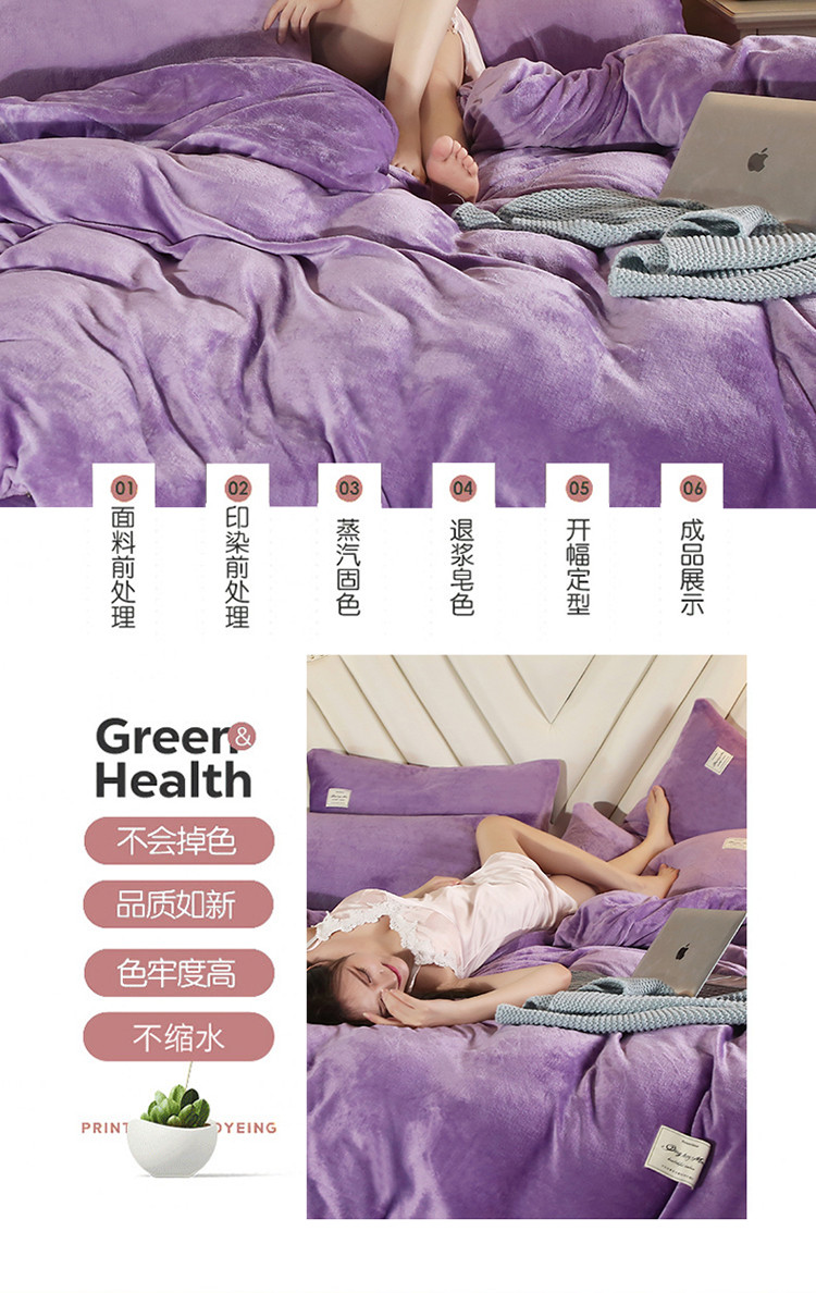 商品名称:情恒 2020新款纯色牛奶绒水晶绒法莱绒贴标四件套 魅紫