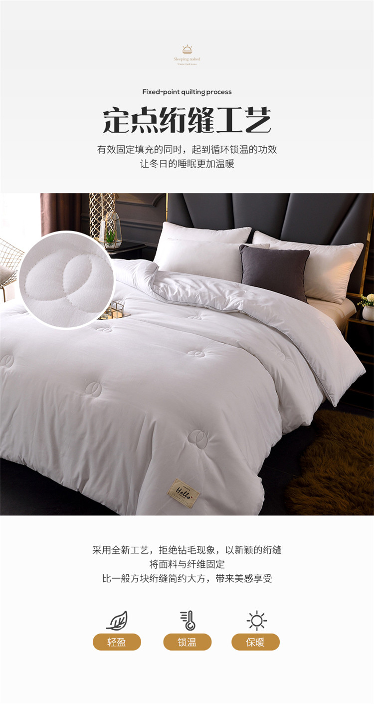 总德芙A类全棉提花小方格不染系列被子20%大豆纤维冬被春秋被被芯,白色