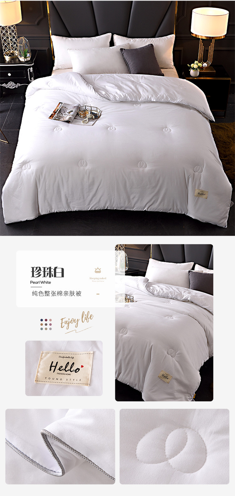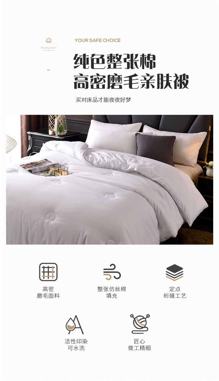 商品名称:德芙2020新款纯色整张棉高密磨毛亲肤被 珍珠白