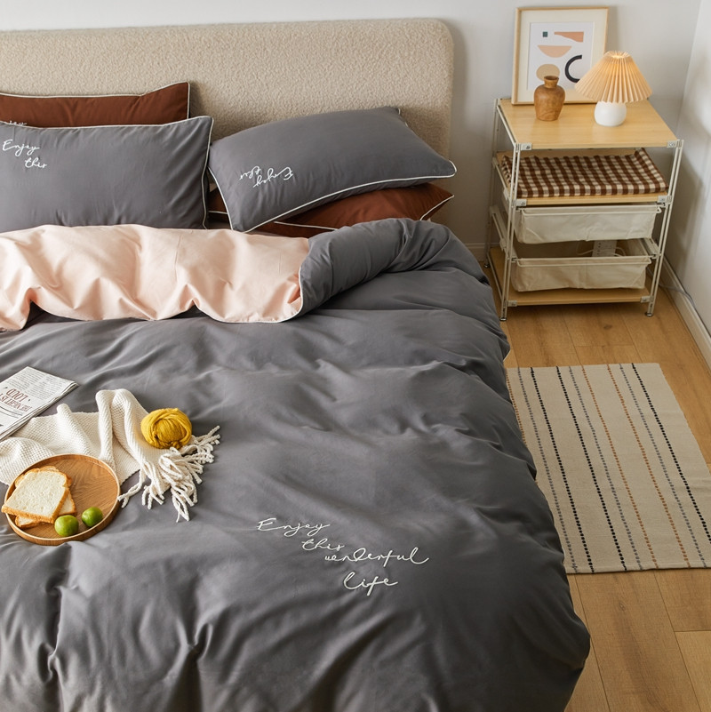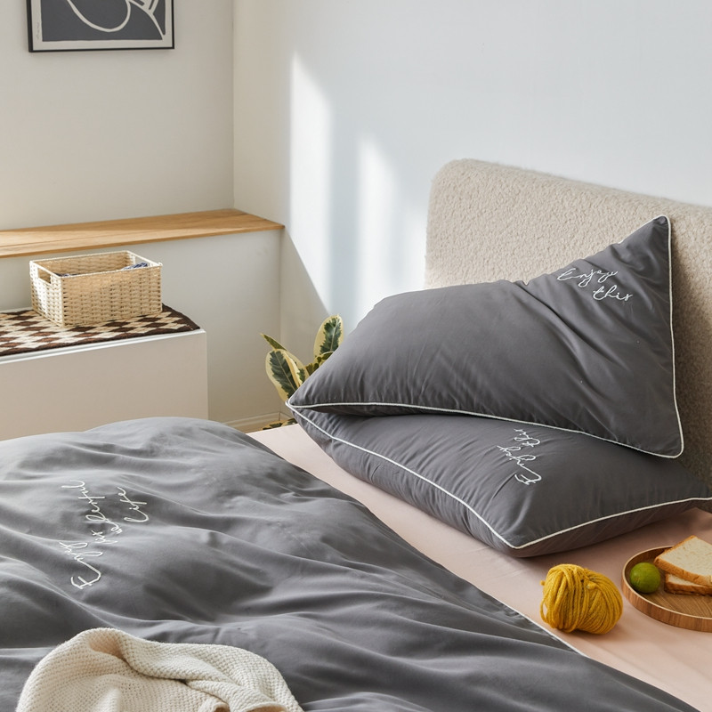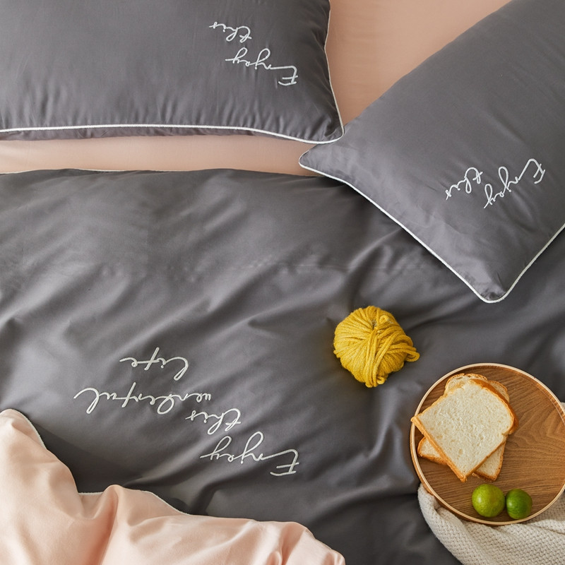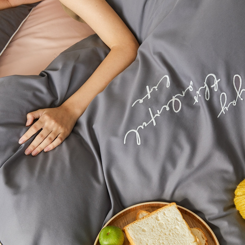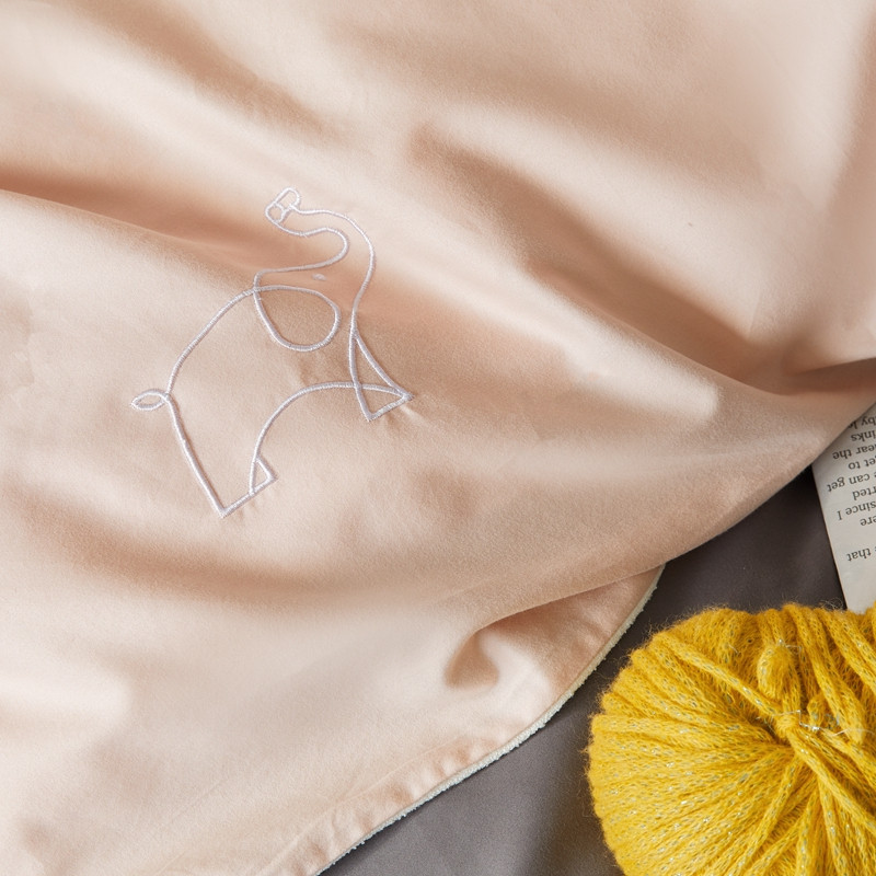 优然居2020新款100支婴儿暖绒棉轻奢风刺绣四件套 轻奢粉灰