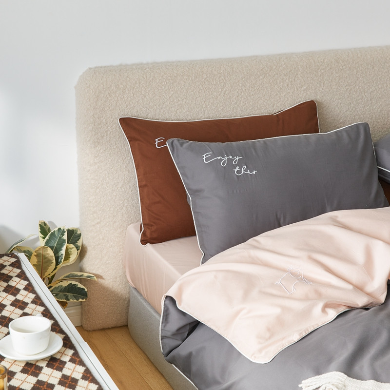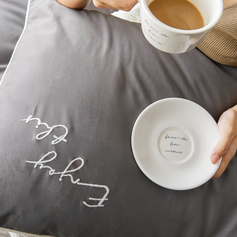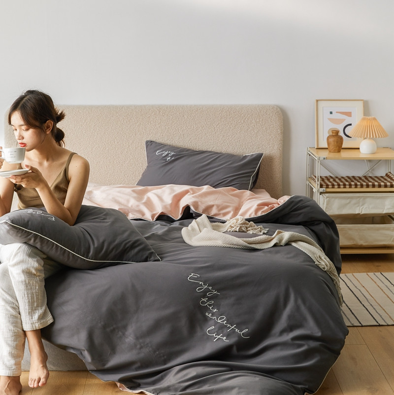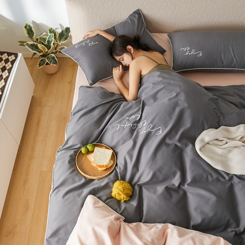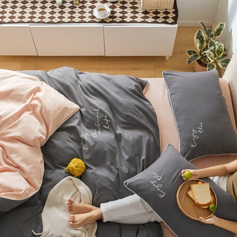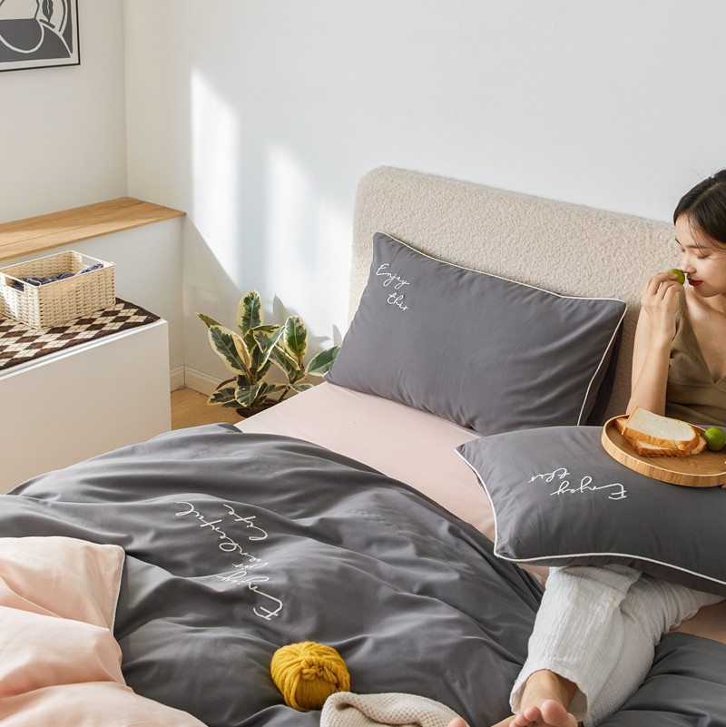 优然居2020新款100支婴儿暖绒棉轻奢风刺绣四件套 轻奢粉灰