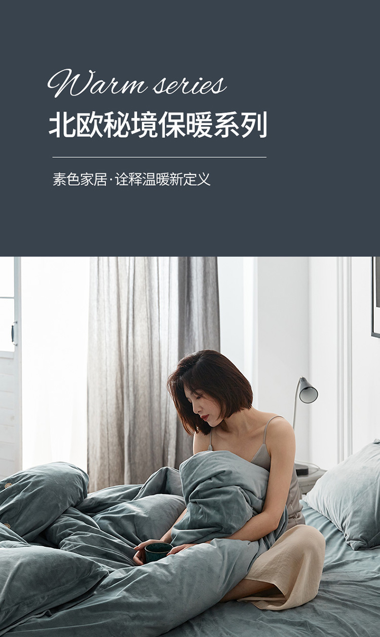 当前位置: 91家纺网 > 商品网购 > 床品套件 > 四件套 > 磨绒四件套 > 新款北欧秘境绒系列四件套 蓝灰色