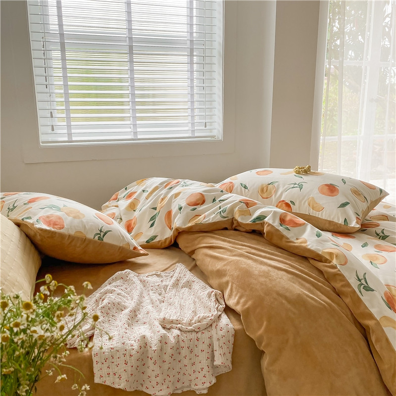 棉眠 2020新品棉加绒A版纯棉B版水晶绒四件套 果园