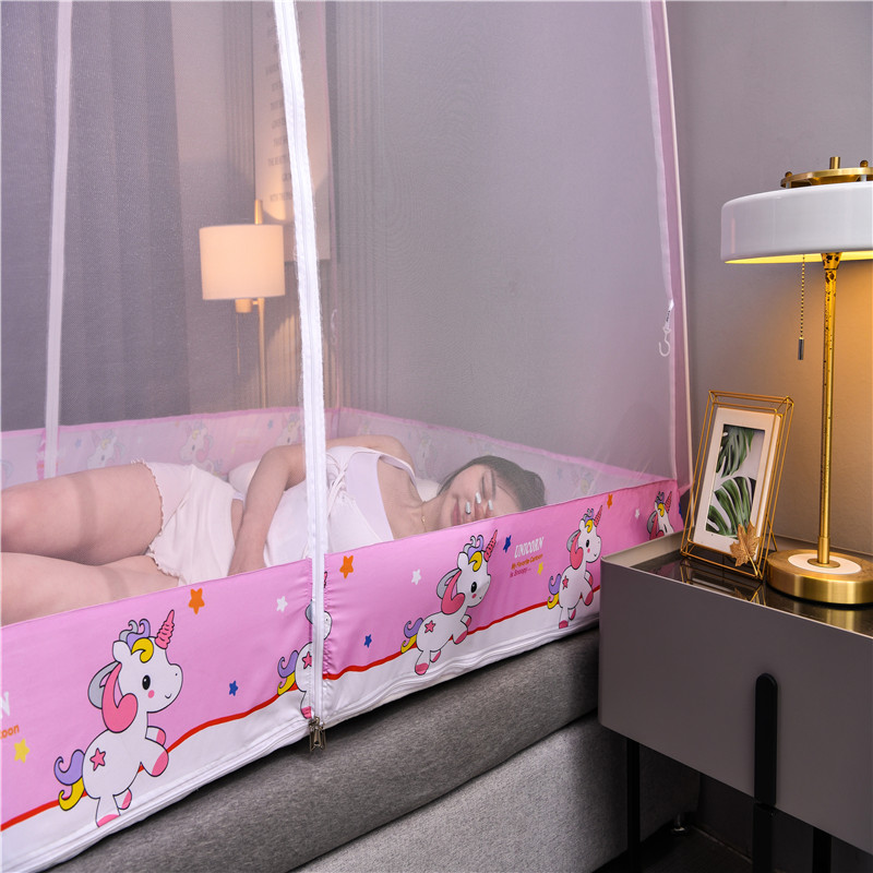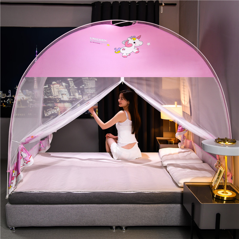 冉美家纺 2021新款布顶防蚊蒙古包蚊帐 彩虹小马-粉