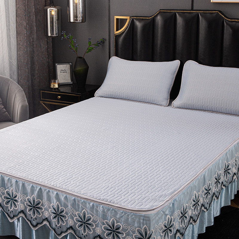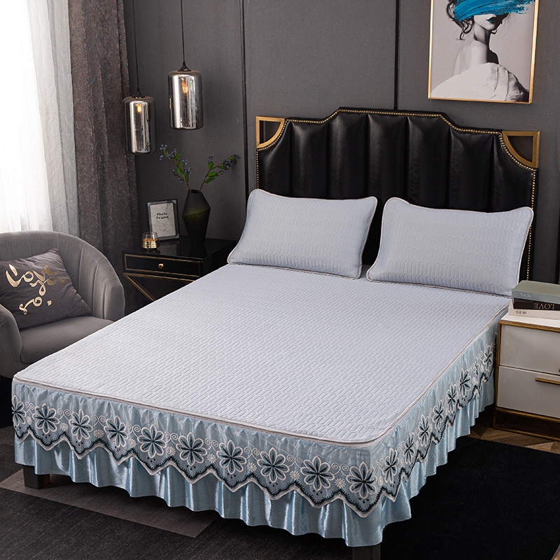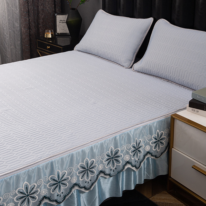 纽缦家纺 2021新款凉感丝乳胶凉席可拆卸床裙款三件套 淡天蓝