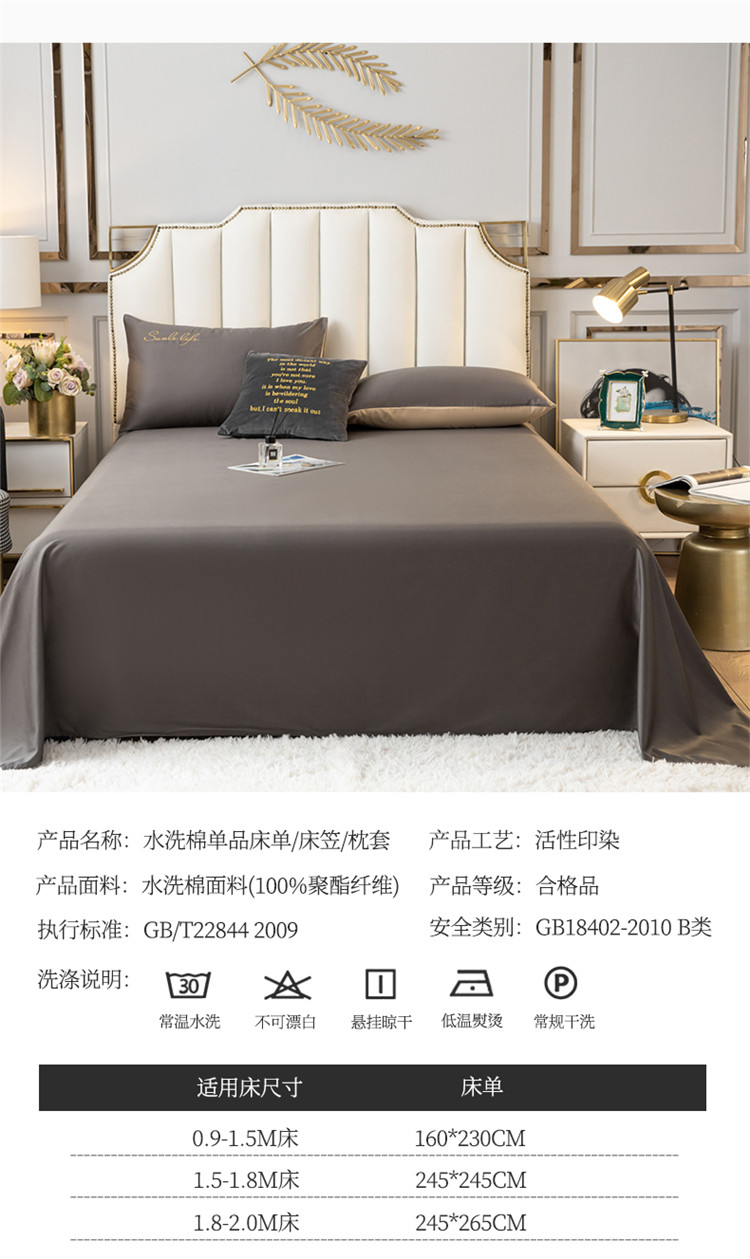 商品名称:古吉梦 2024新款水洗棉-S双拼单品床单床笠枕套 高级灰