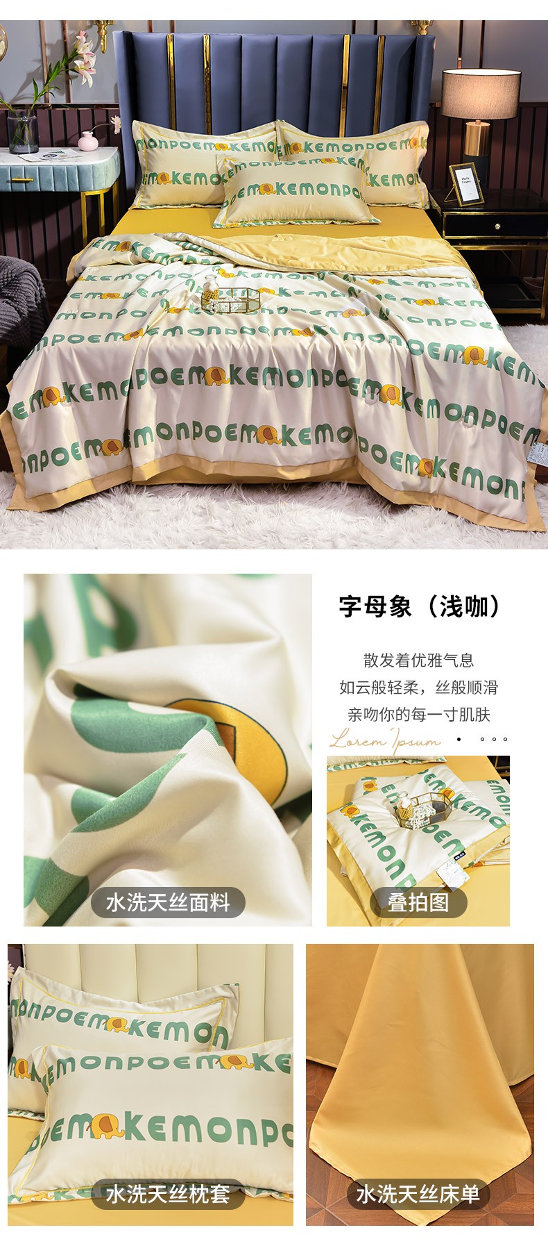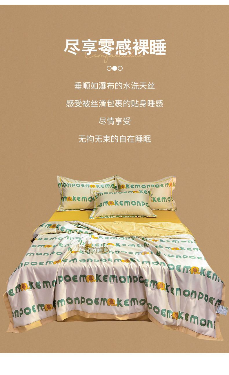 商品名称:梦柏2021新款水洗天丝夏被 夏凉被 字母象(浅咖)