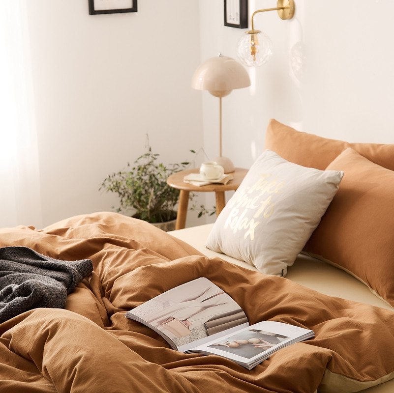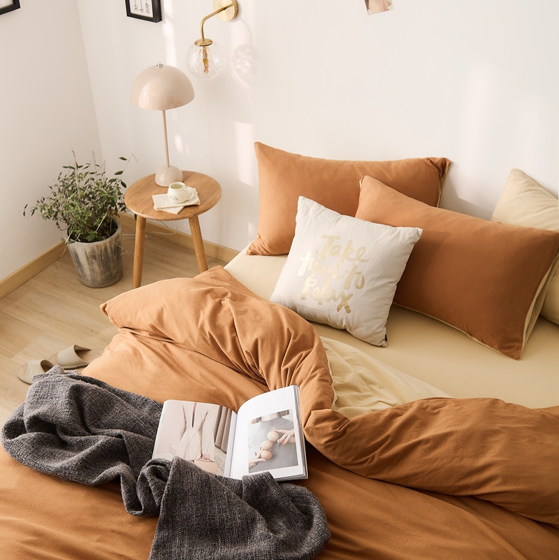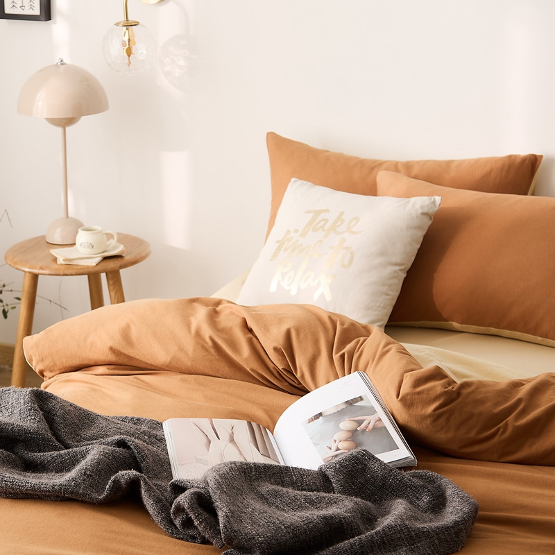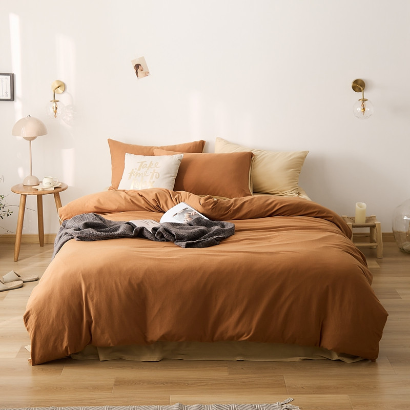 当前位置: 91家纺网 > 商品网购 > 床品套件 > 四件套 > 针织棉四件套 > 原研家居 2021新款全棉针织棉纯色系列四件套 焦糖色奶茶