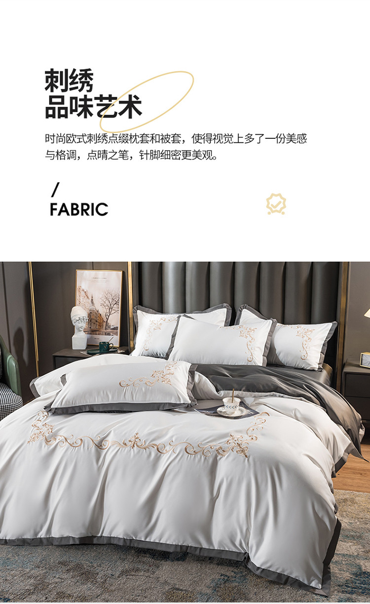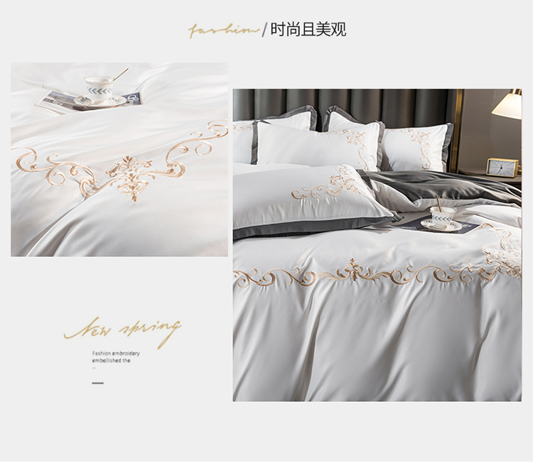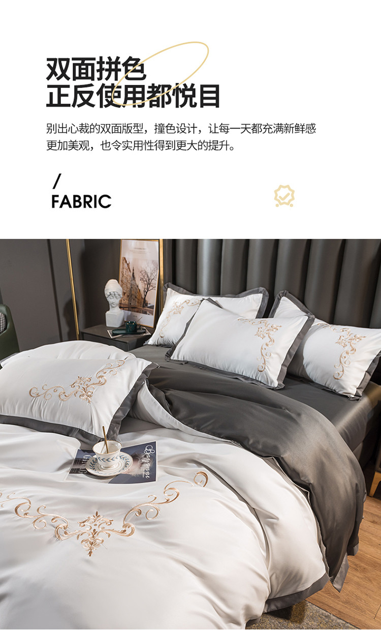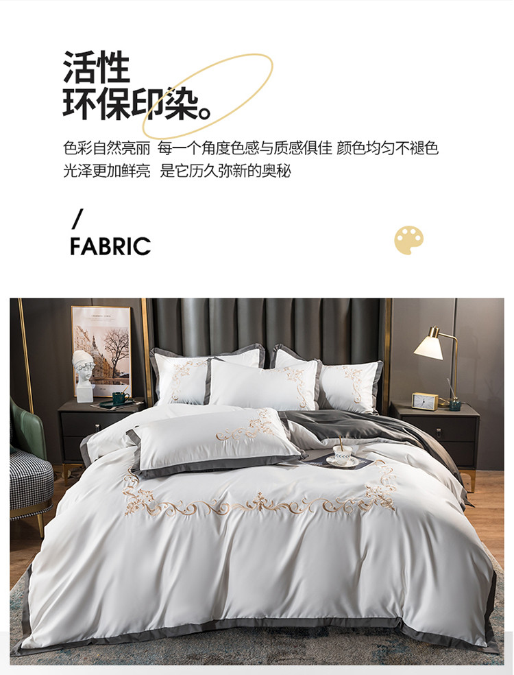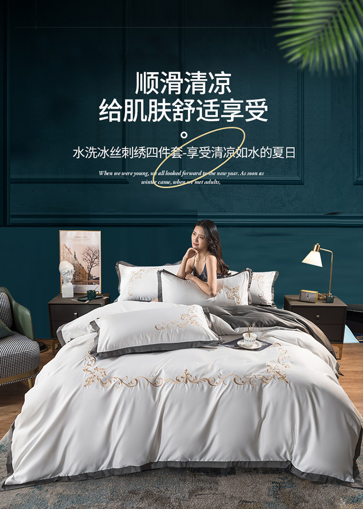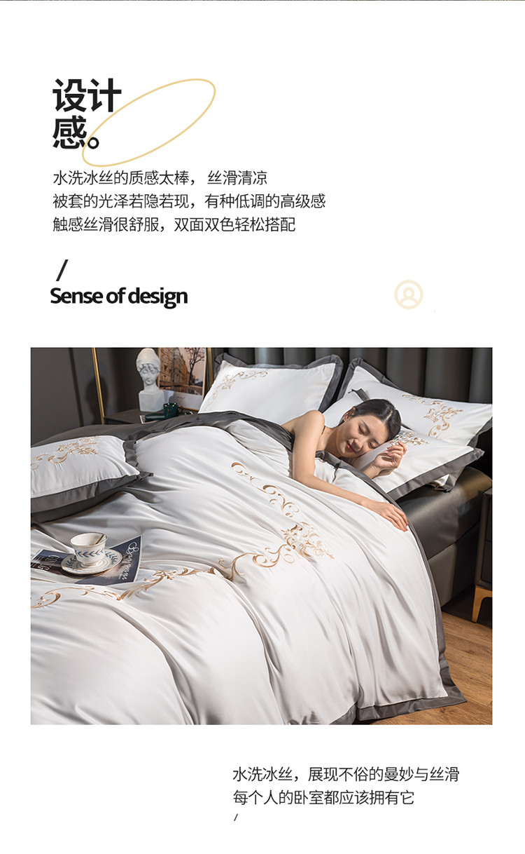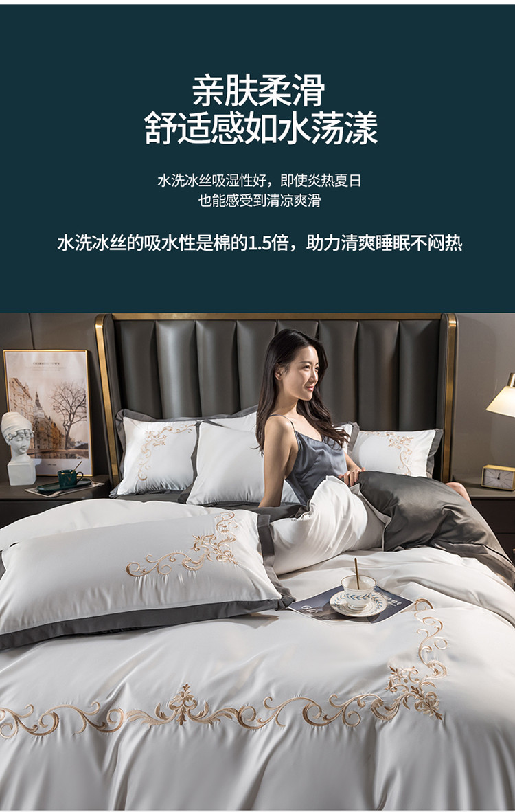 (总)骏腾 2023水洗冰丝刺绣四件套水洗真丝三件套天丝床笠,本白,豆沙,粉色,格林蓝,柠檬黄,水墨灰,雾霾蓝,西柚橙