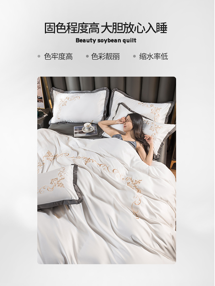 (总)骏腾 2022新款纯色水洗真丝刺绣四件套,羽毛-湖蓝,羽毛-米白,羽毛-墨绿,羽毛-深蓝,羽毛-天蓝,羽毛-银灰