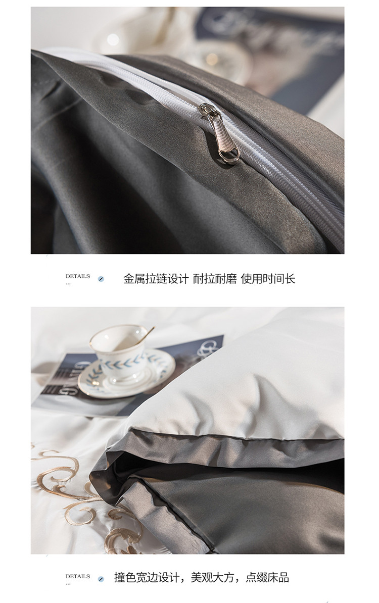 (总)骏腾 2022简爱水洗天丝绣花四件套水洗真丝三件套,宝蓝,湖蓝,酒红,墨绿,深灰,银灰,玉色