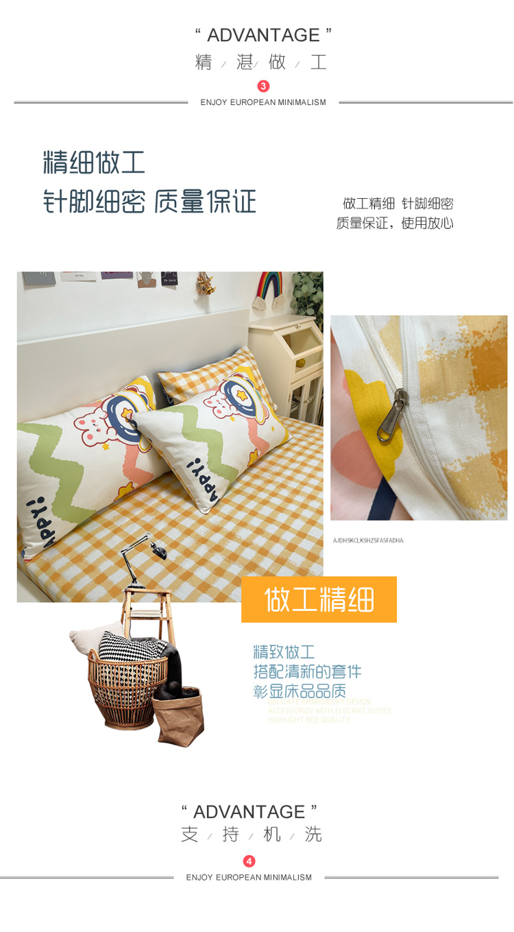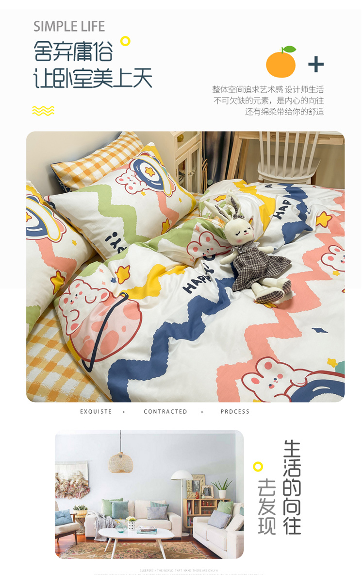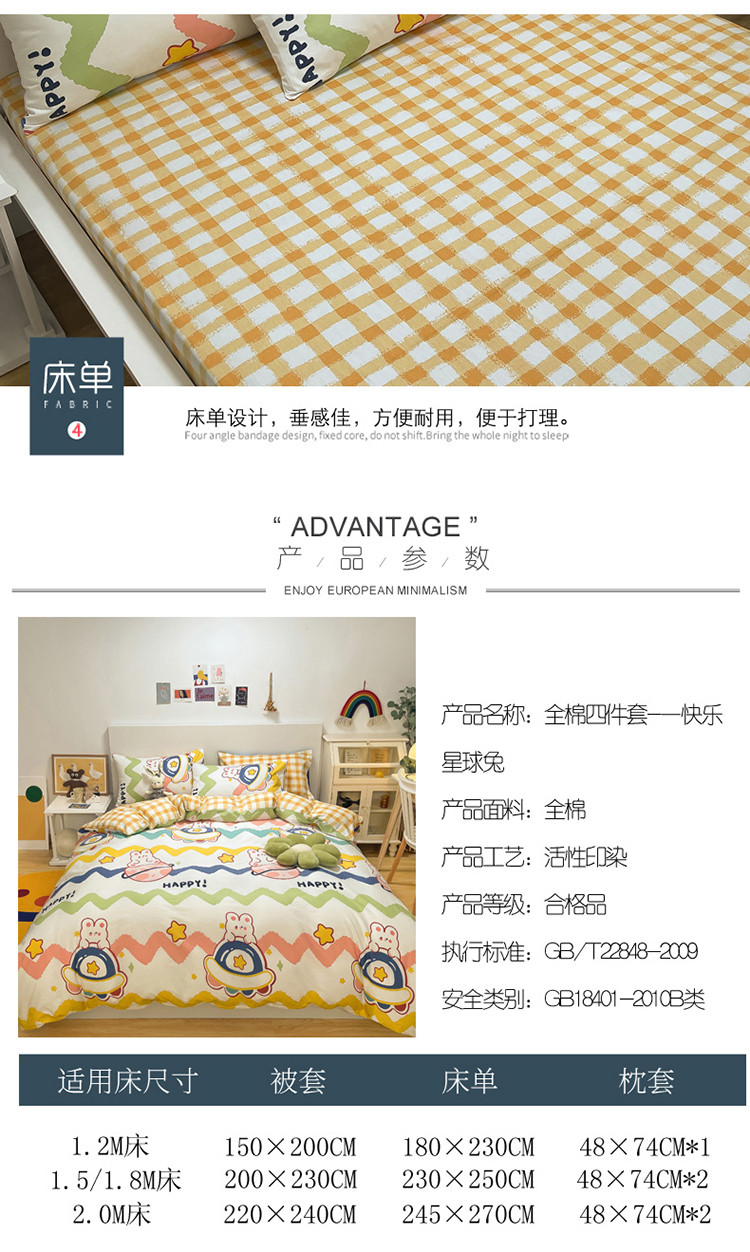 曼之夏2022款全棉13372匹马棉纯棉印花四件套快乐星球兔