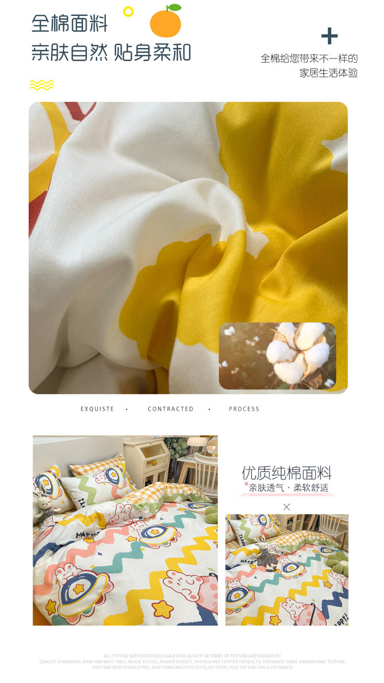 商品名称:曼之夏2022款全棉13372匹马棉纯棉印花四件套快乐星球兔
