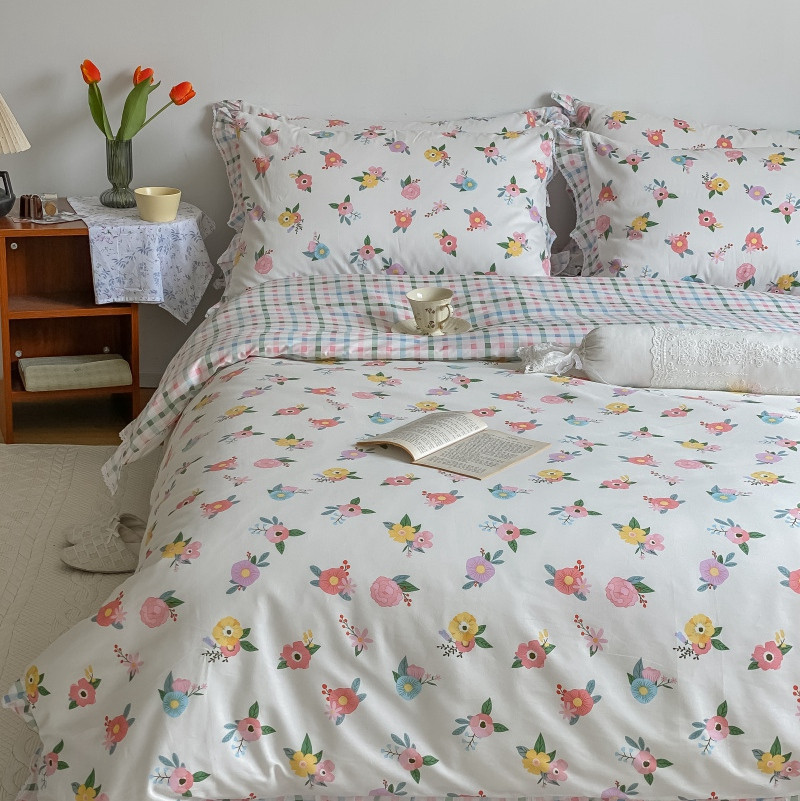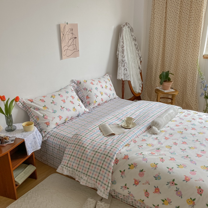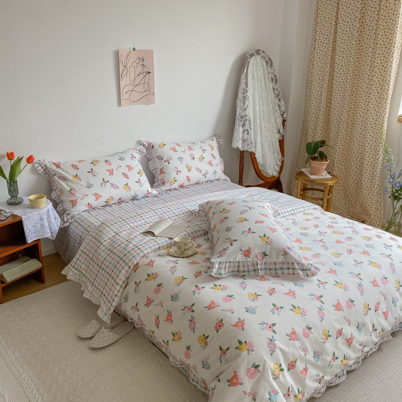 棉生活 2022新款韩系花边碎花四件套 你的花香
