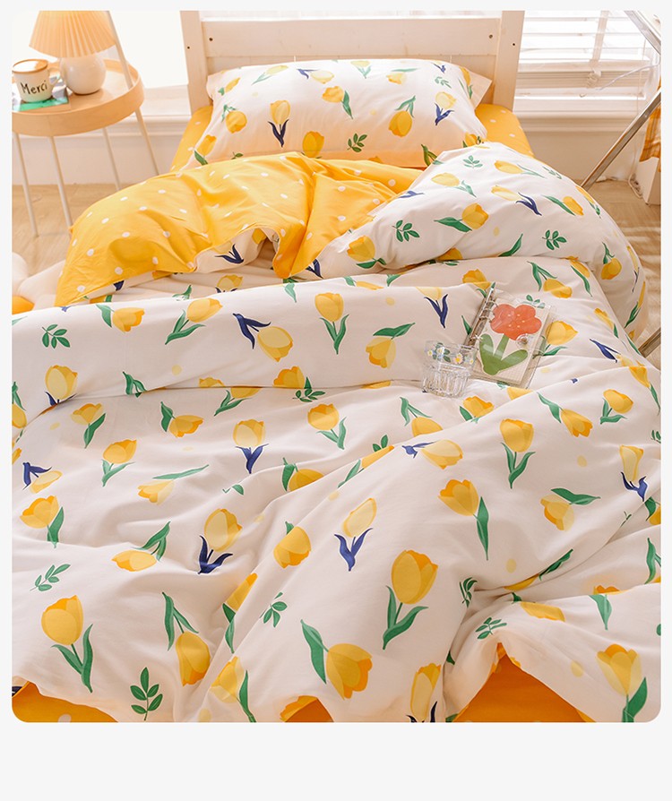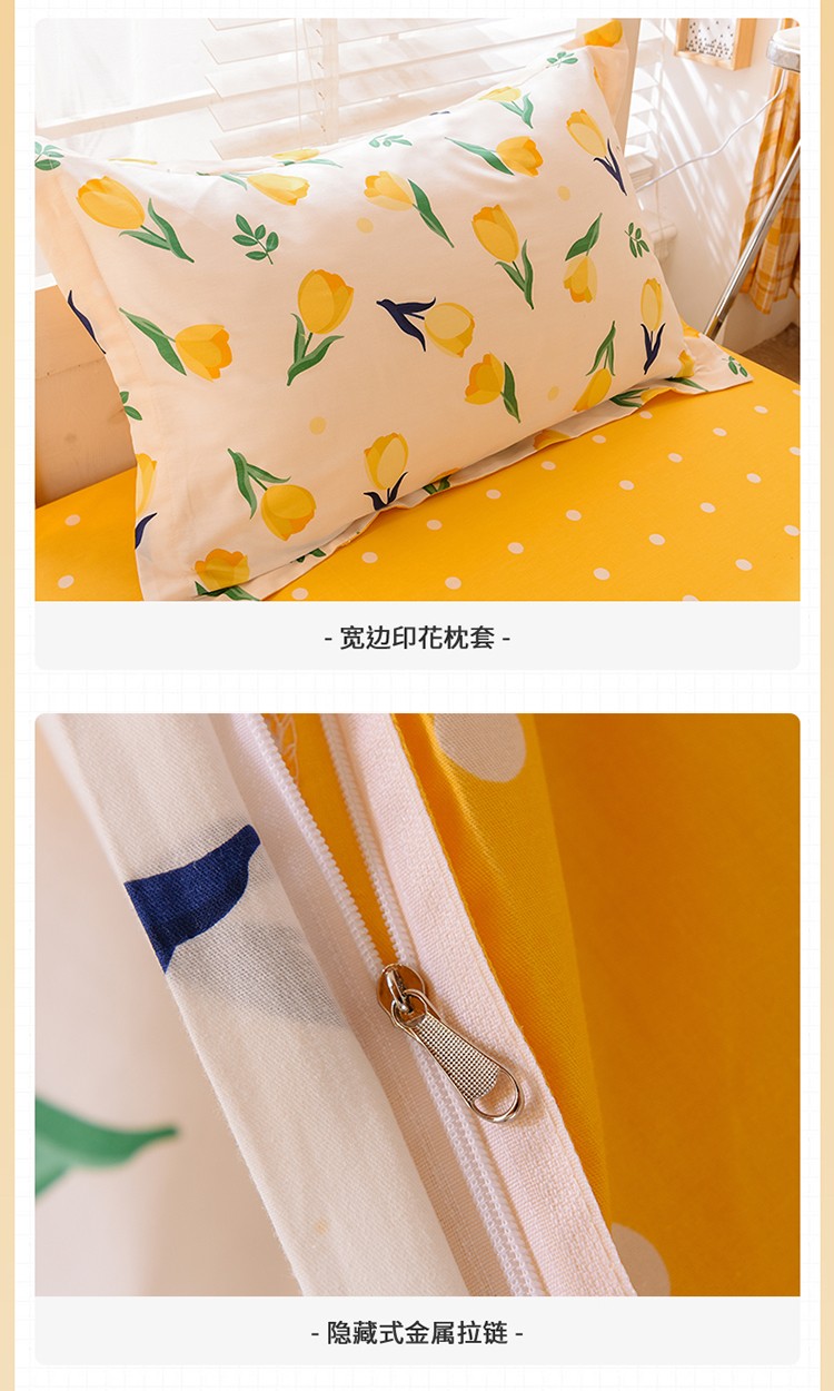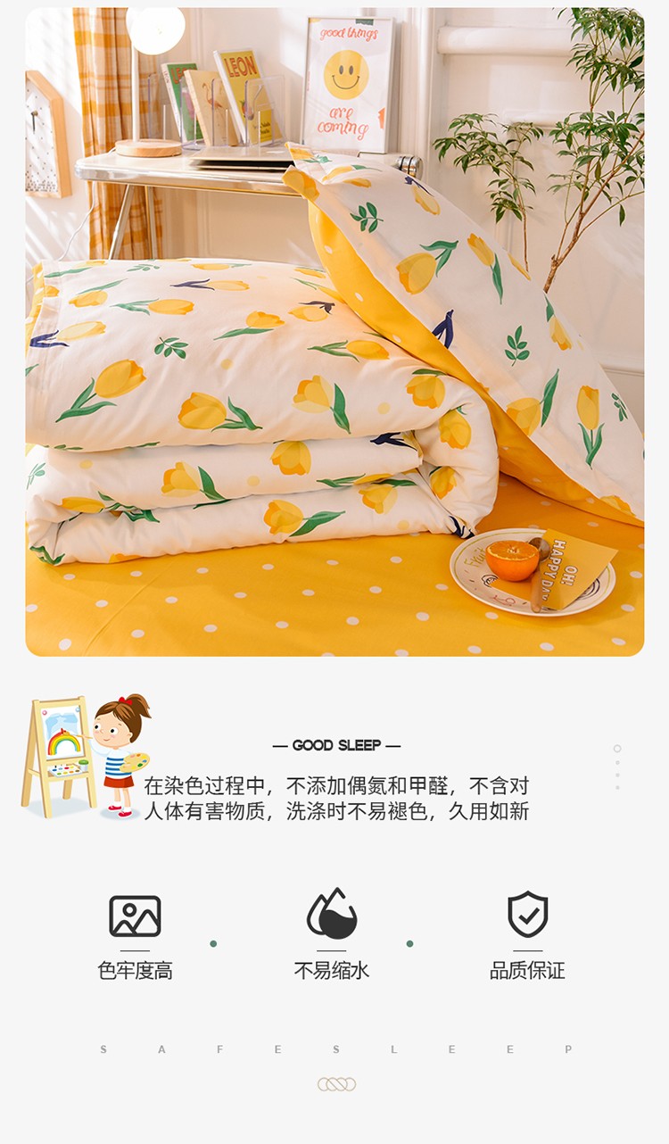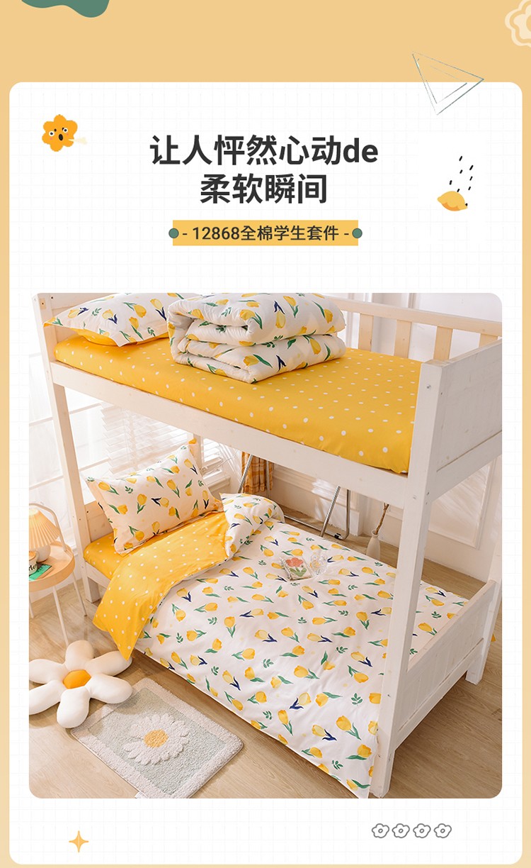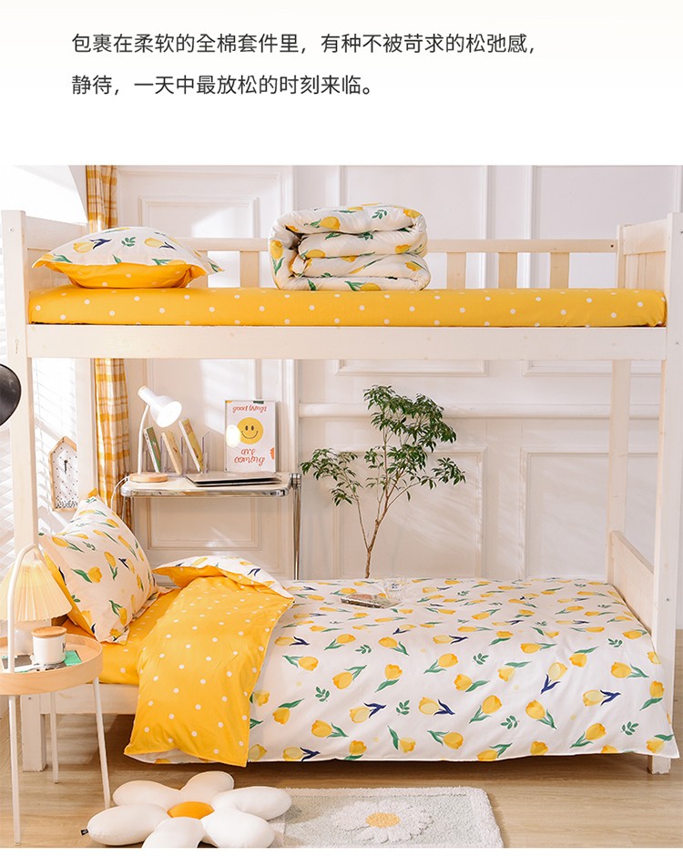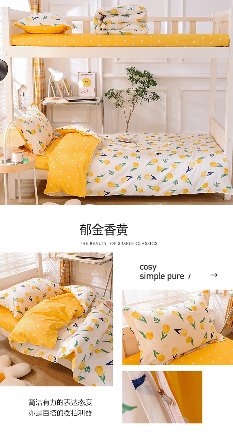 商品名称:多品家纺 2021新款12868全棉学生三件套 郁金香黄