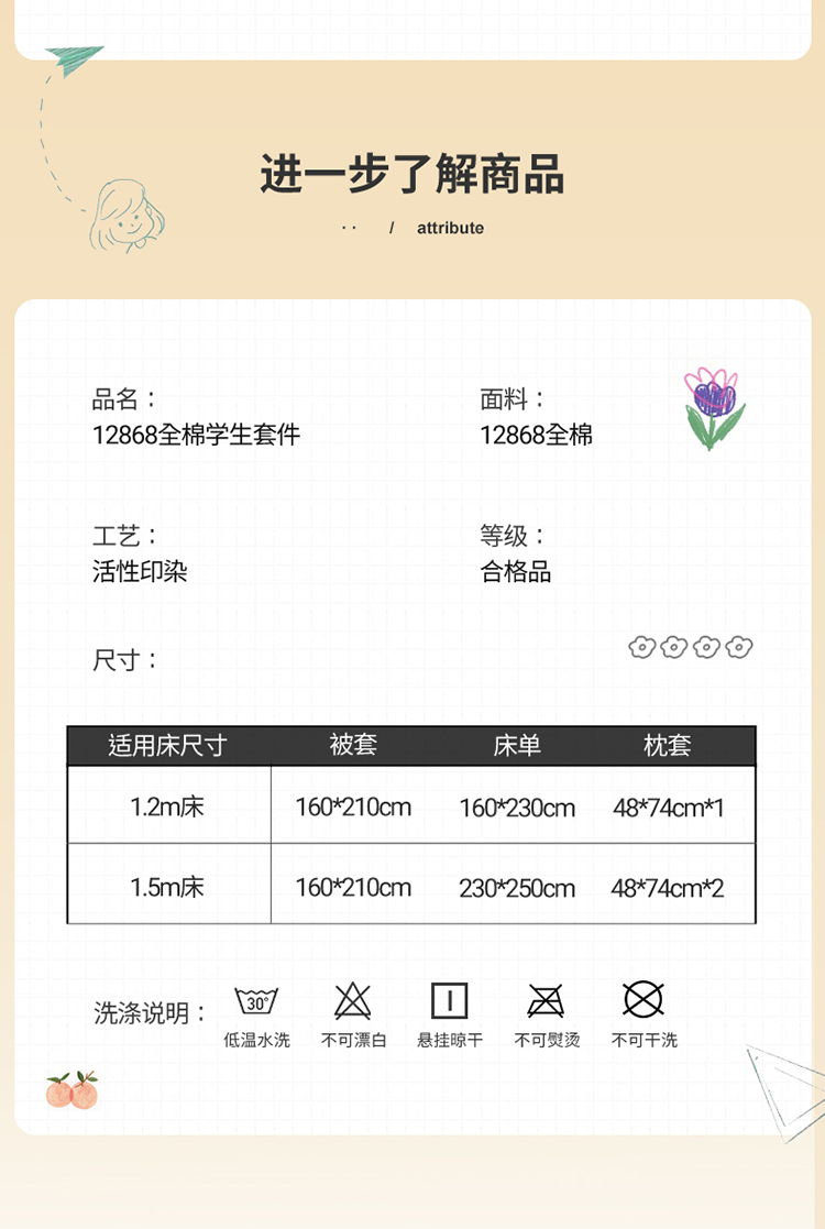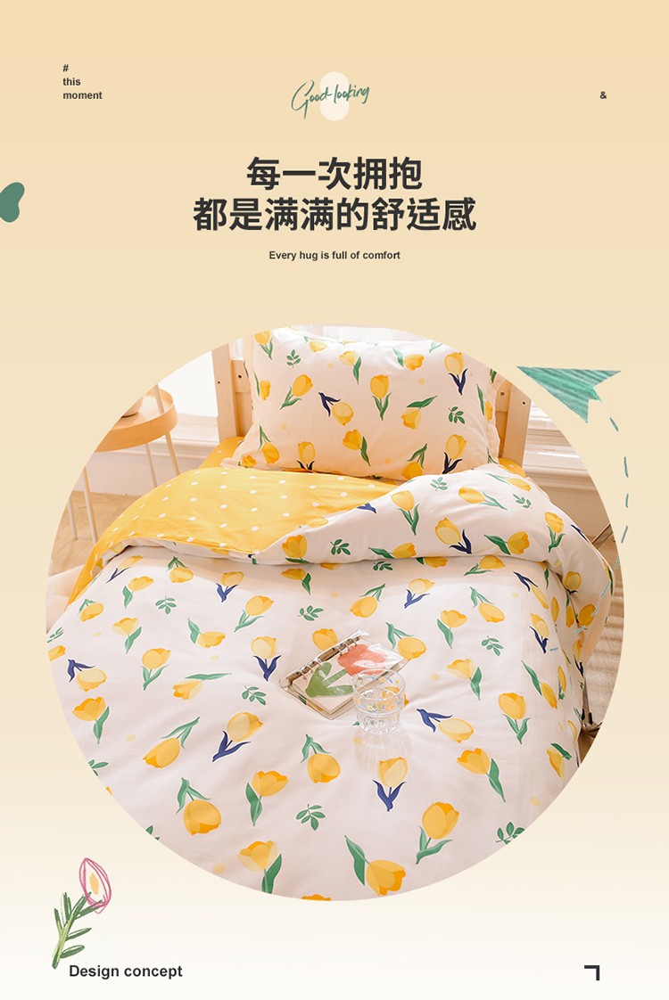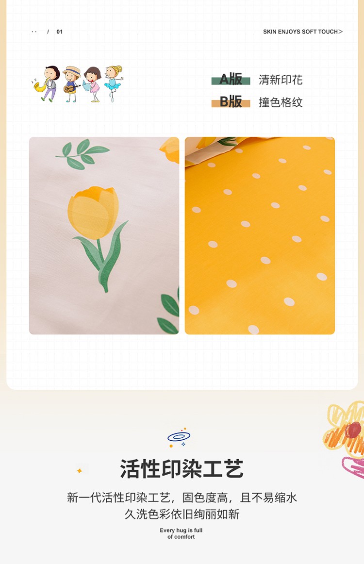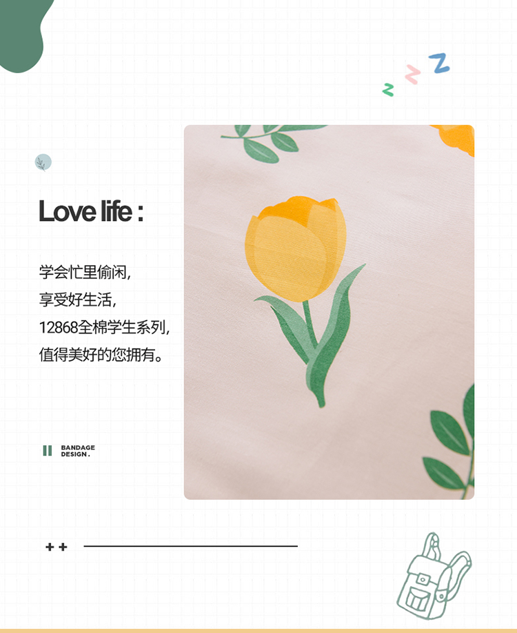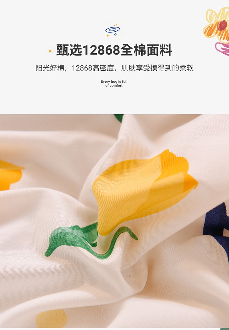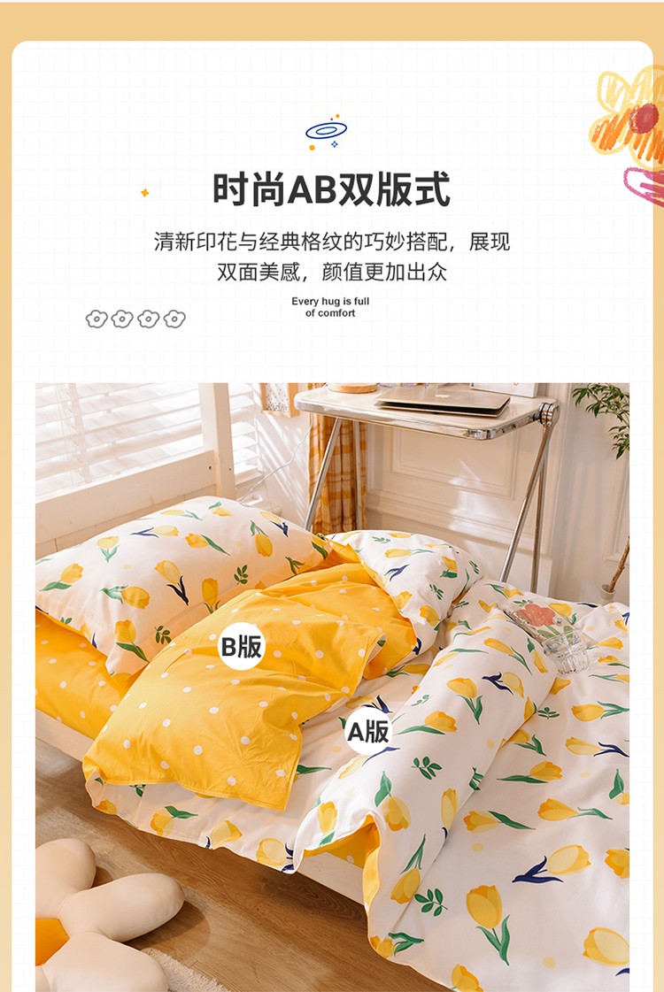 商品名称:多品家纺 2021新款12868全棉学生三件套 郁金香黄