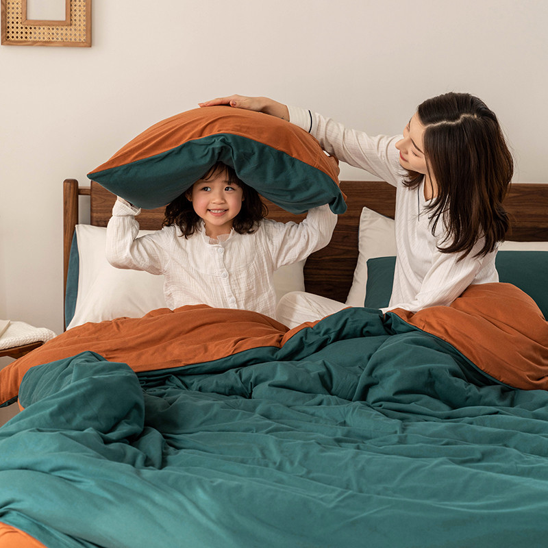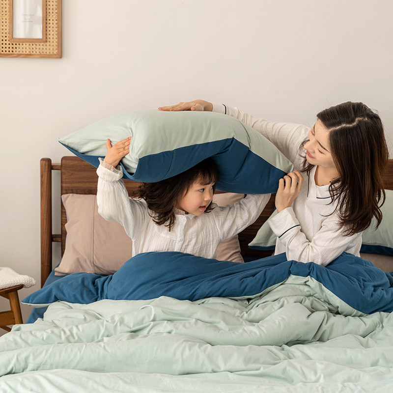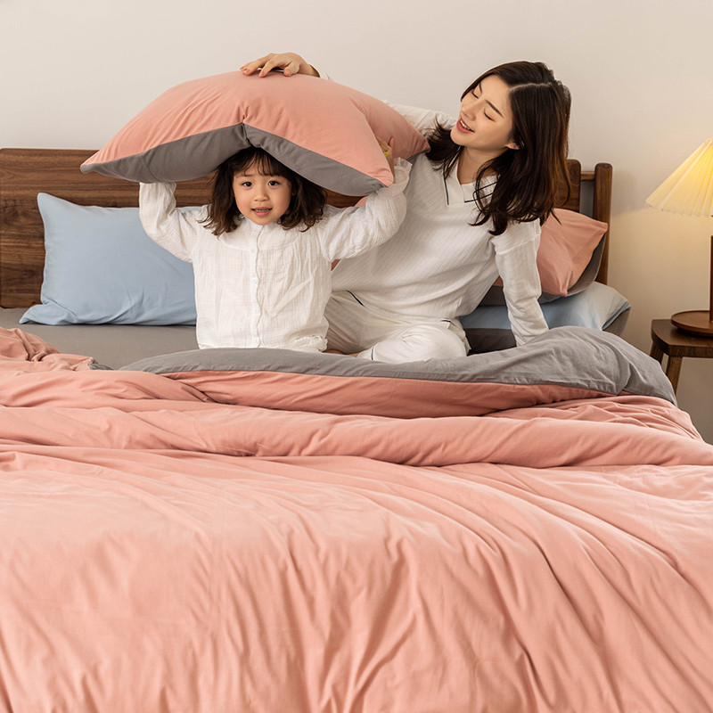 (总)风向标家纺2022新款A类针织棉纯色撞色四件套