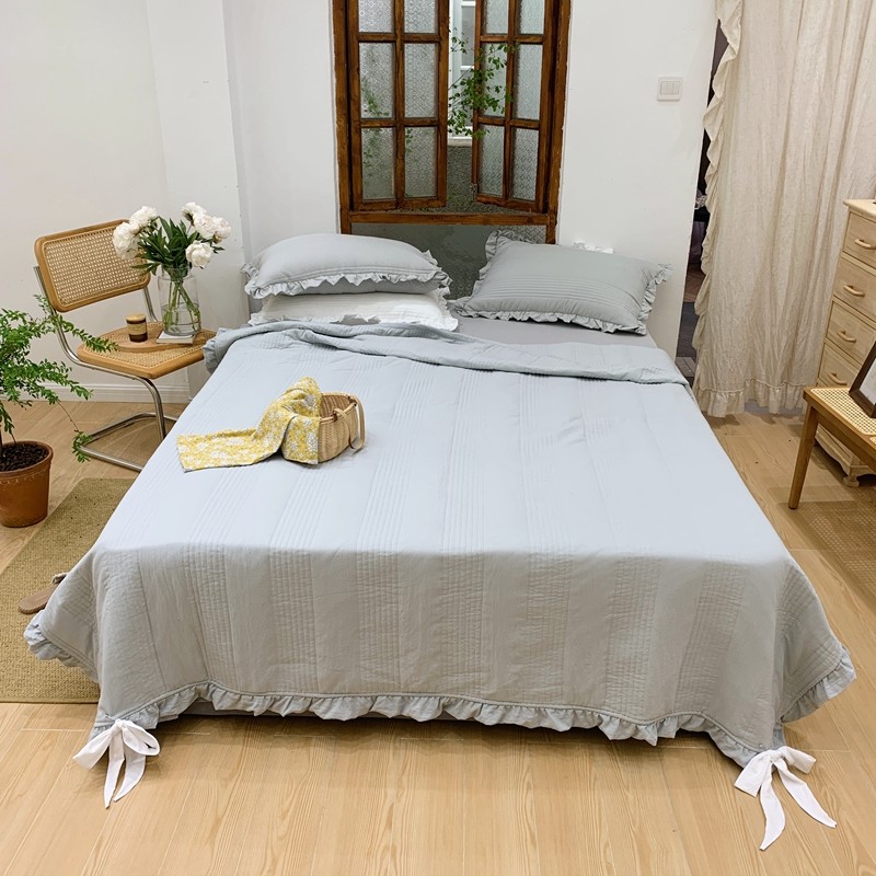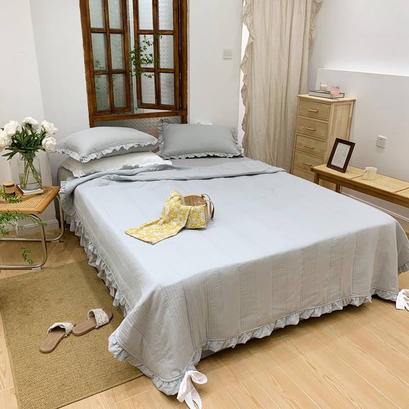 (总)北纬27度2025新款双层全棉绉绉纱夏被四件套,米色,浅卡其,豆沙,牛仔蓝