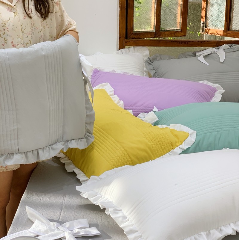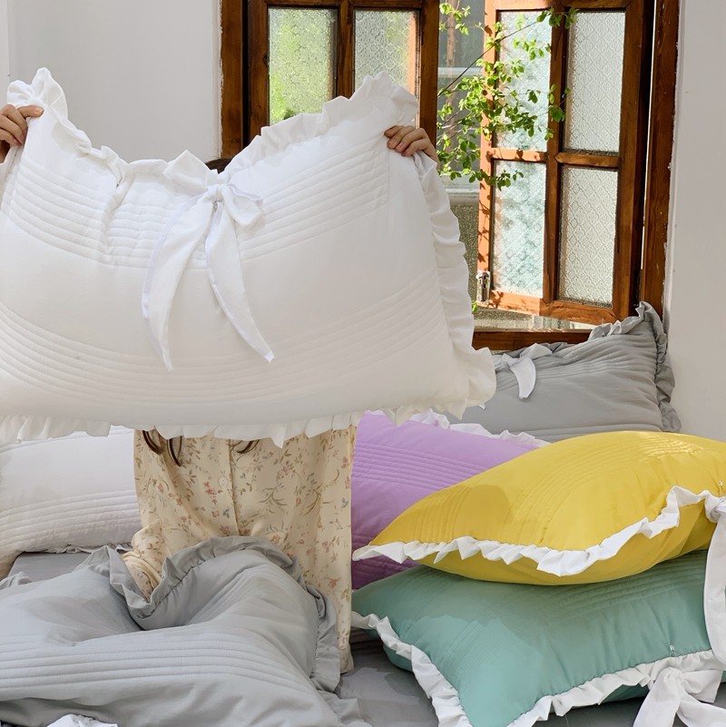 总北纬27度 2022法式双层花边全棉夹棉床裙四件套直播爆款,高级白,公主粉,海洋蓝,可爱黄