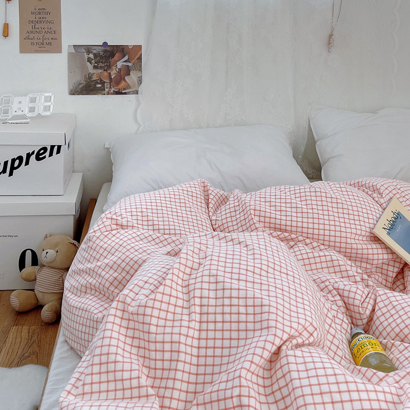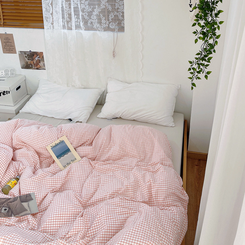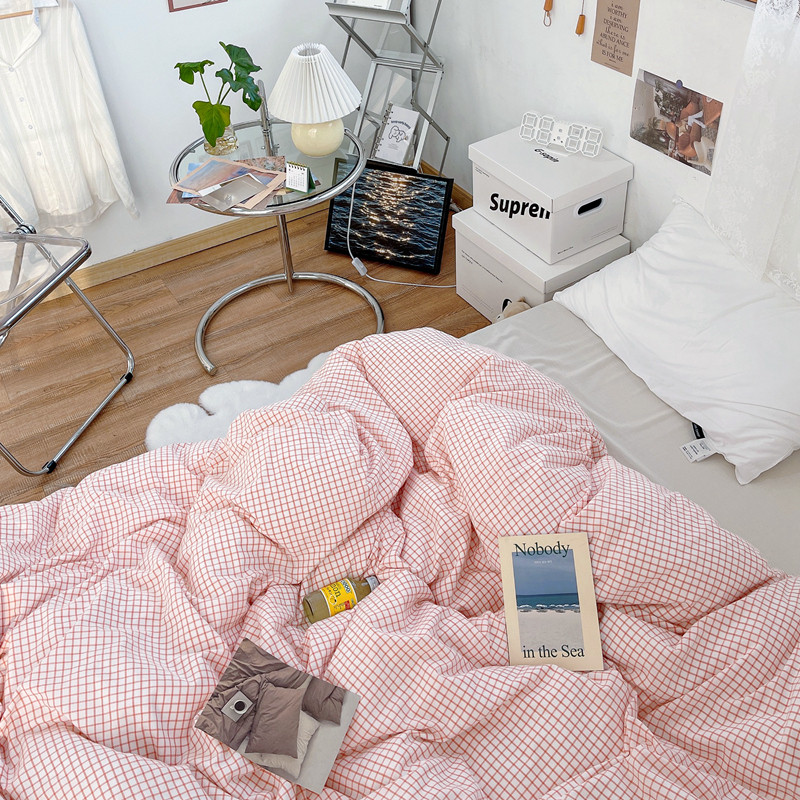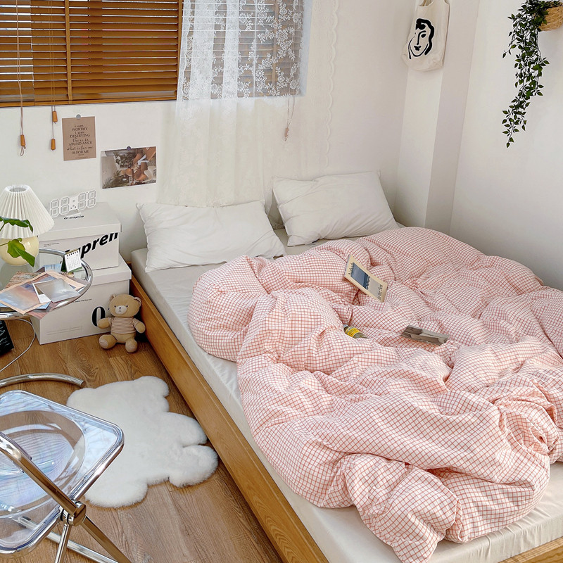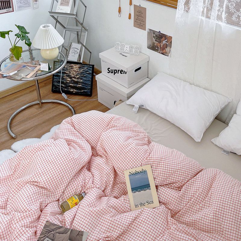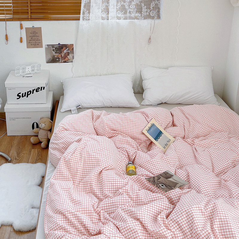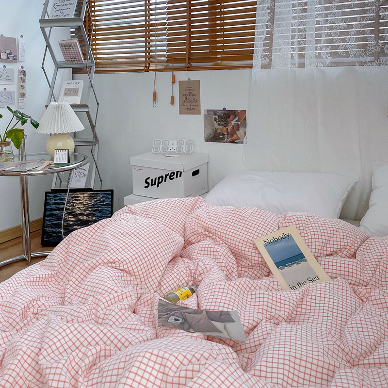 安莱生活 2021新款水洗棉全棉单品被套 清新嫩粉格