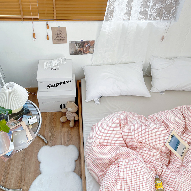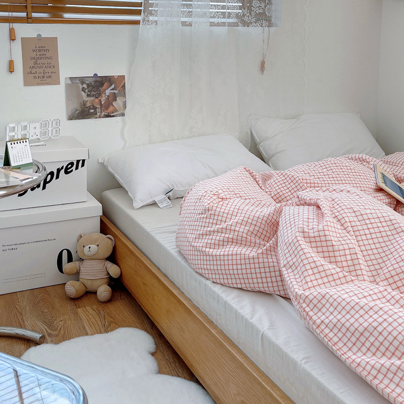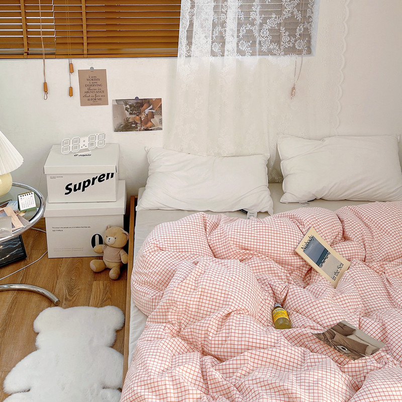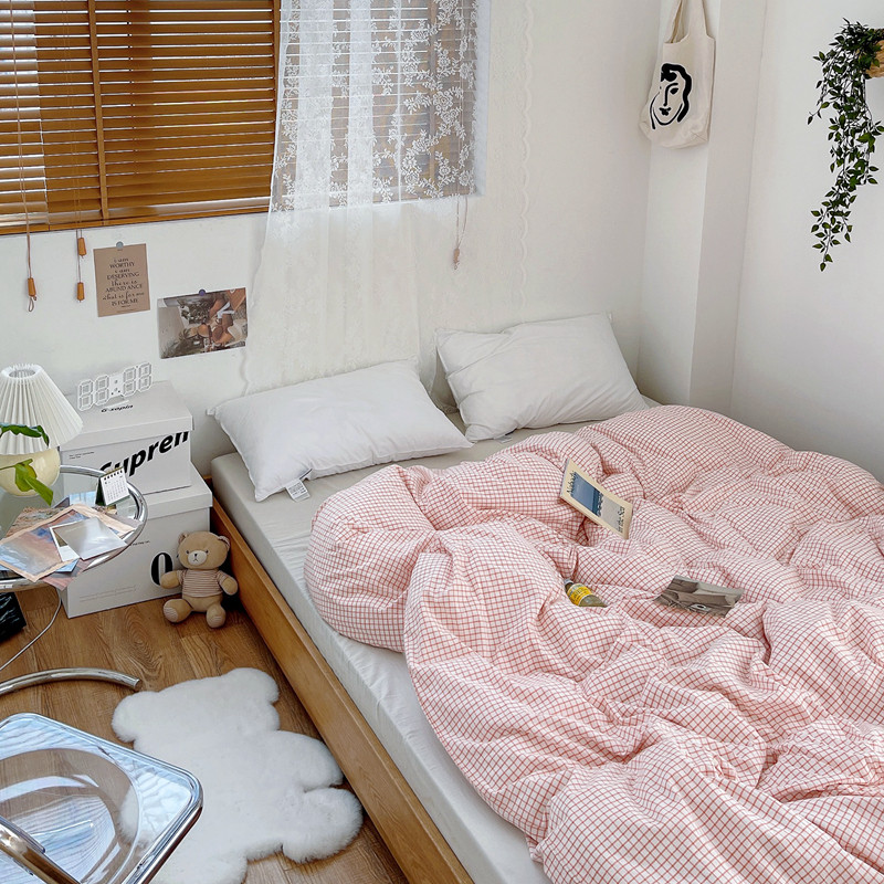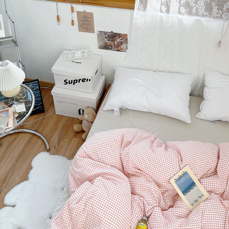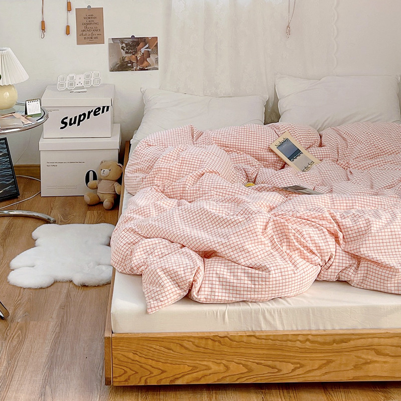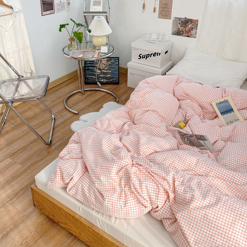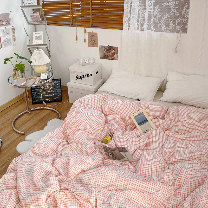 安莱生活 2021新款水洗棉全棉单品被套 清新嫩粉格