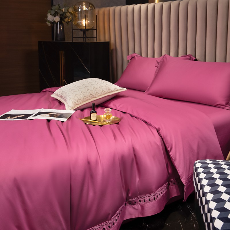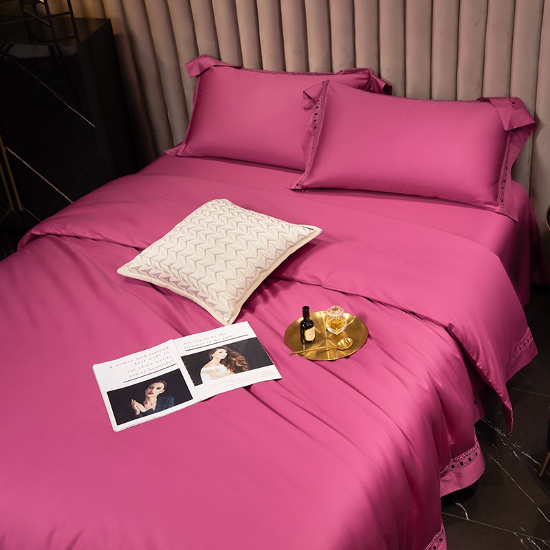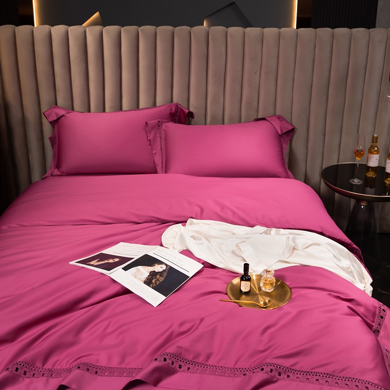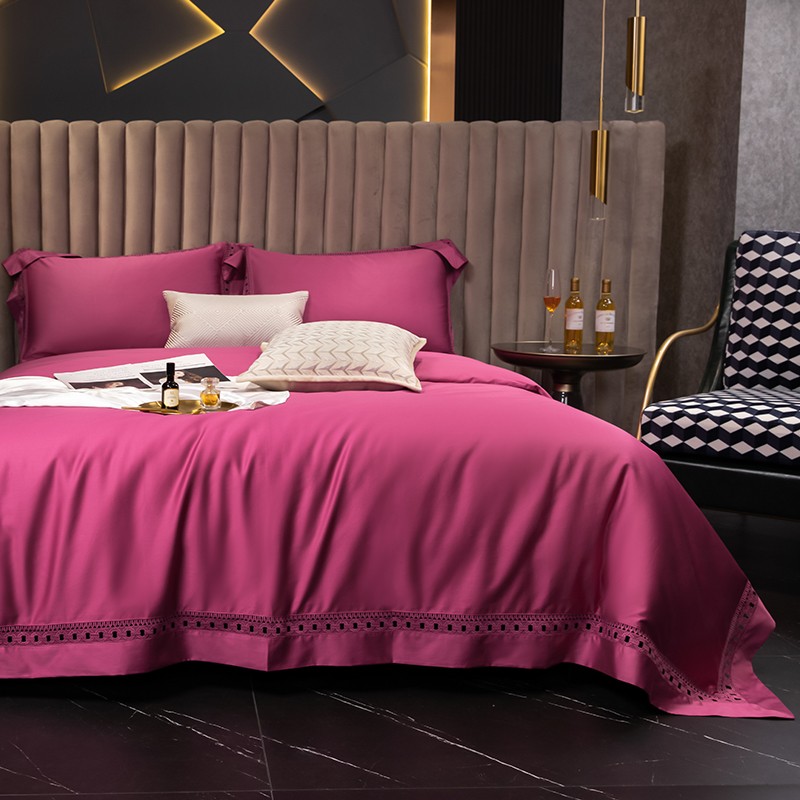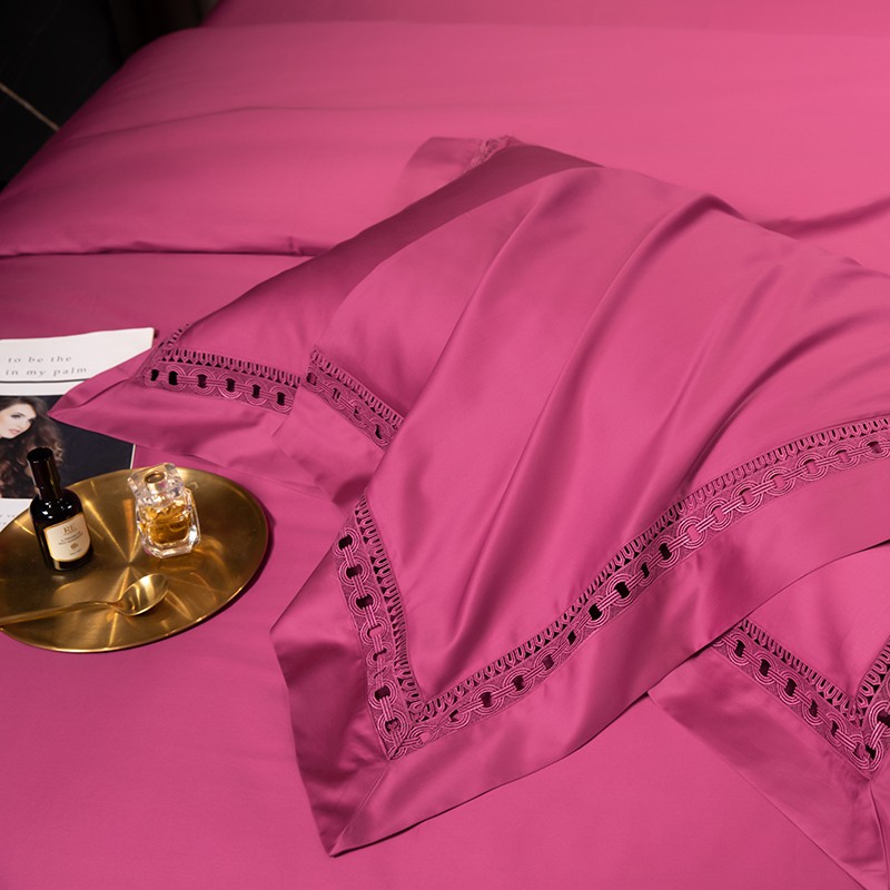 当前位置: 91家纺网 > 商品网购 > 床品套件 > 四件套 > 化纤活性四件套 > 朵美 2021新款140支澳棉镂空四件套 玫酒红