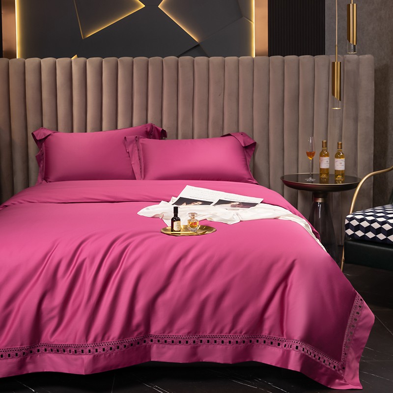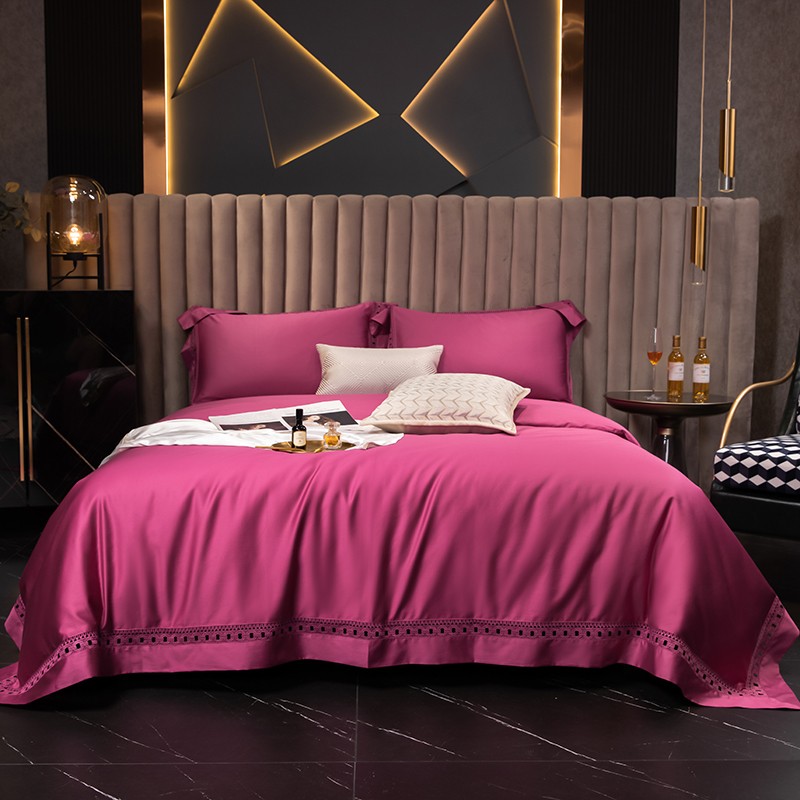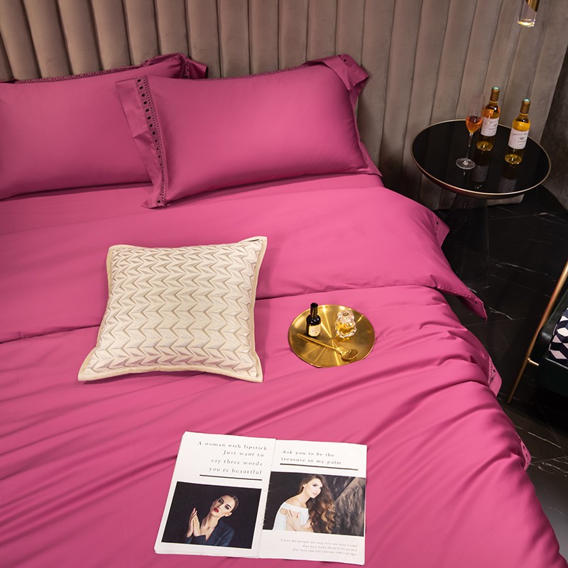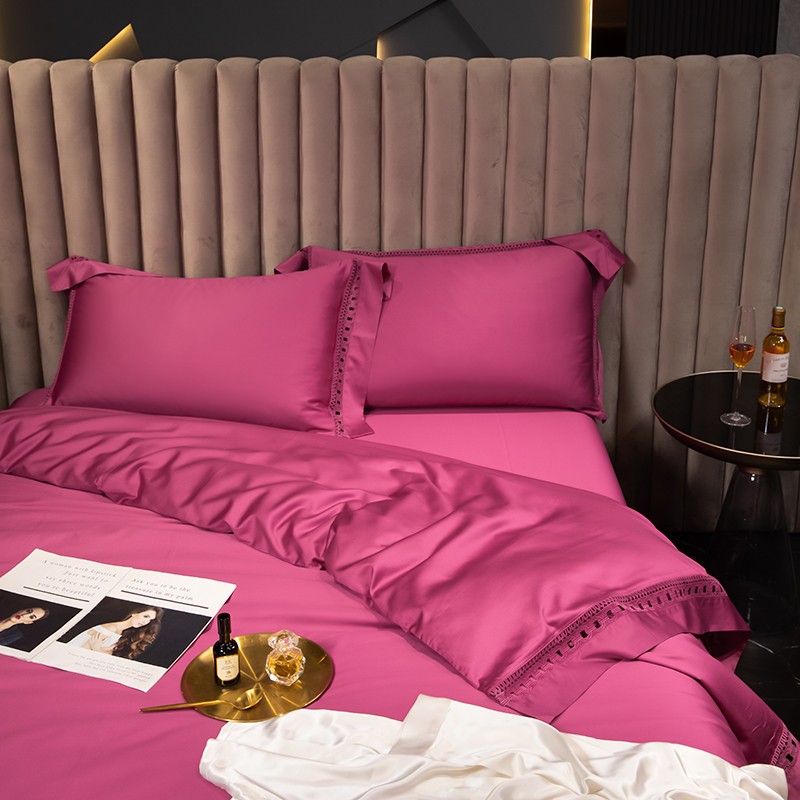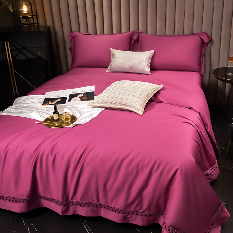当前位置: 91家纺网 > 商品网购 > 床品套件 > 四件套 > 化纤活性四件套 > 朵美 2021新款140支澳棉镂空四件套 玫酒红