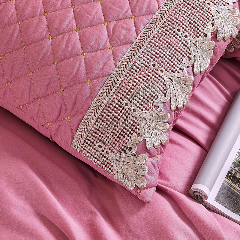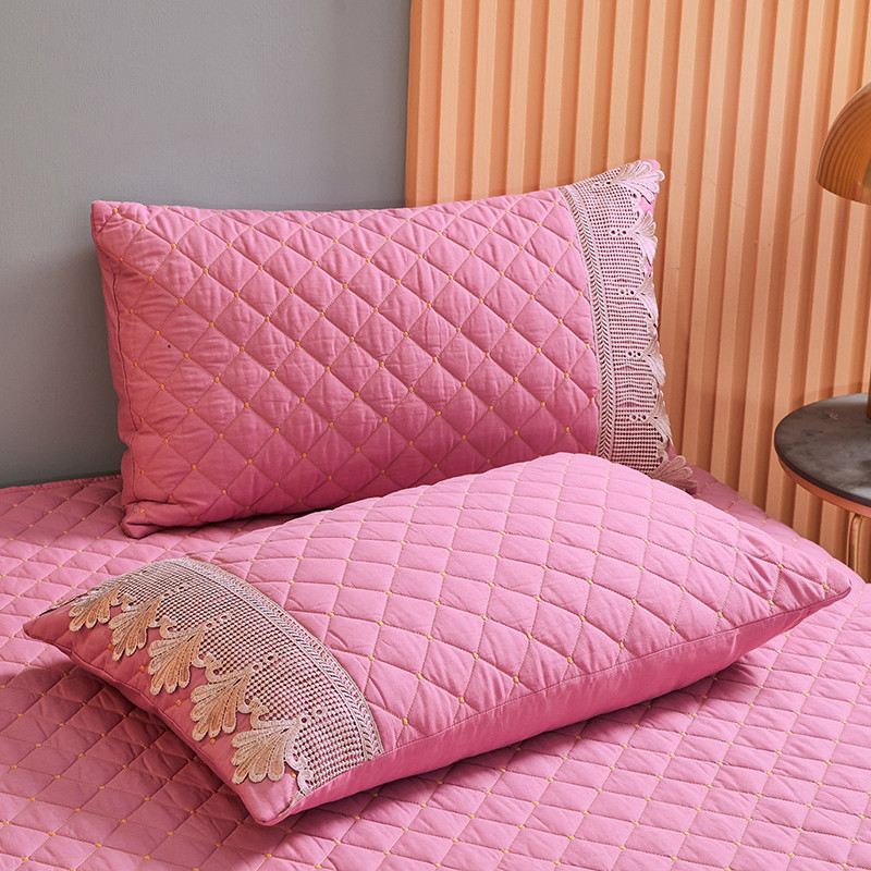 十个点家纺 2021新款水溶边夹棉单品枕套 粉豆沙一对