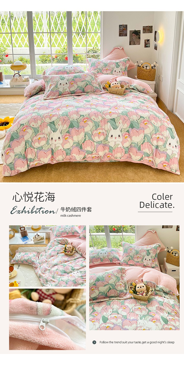 (总)呗旺鹿 2025新款卡通棉+绒牛奶绒棉绒四件套,心意满满,快乐魔法,闹钟麦田