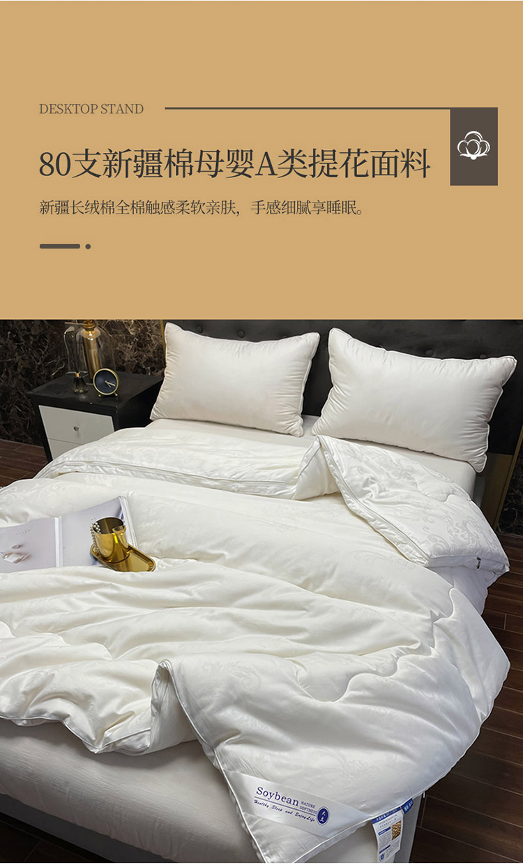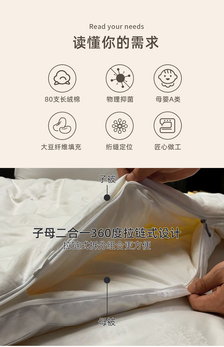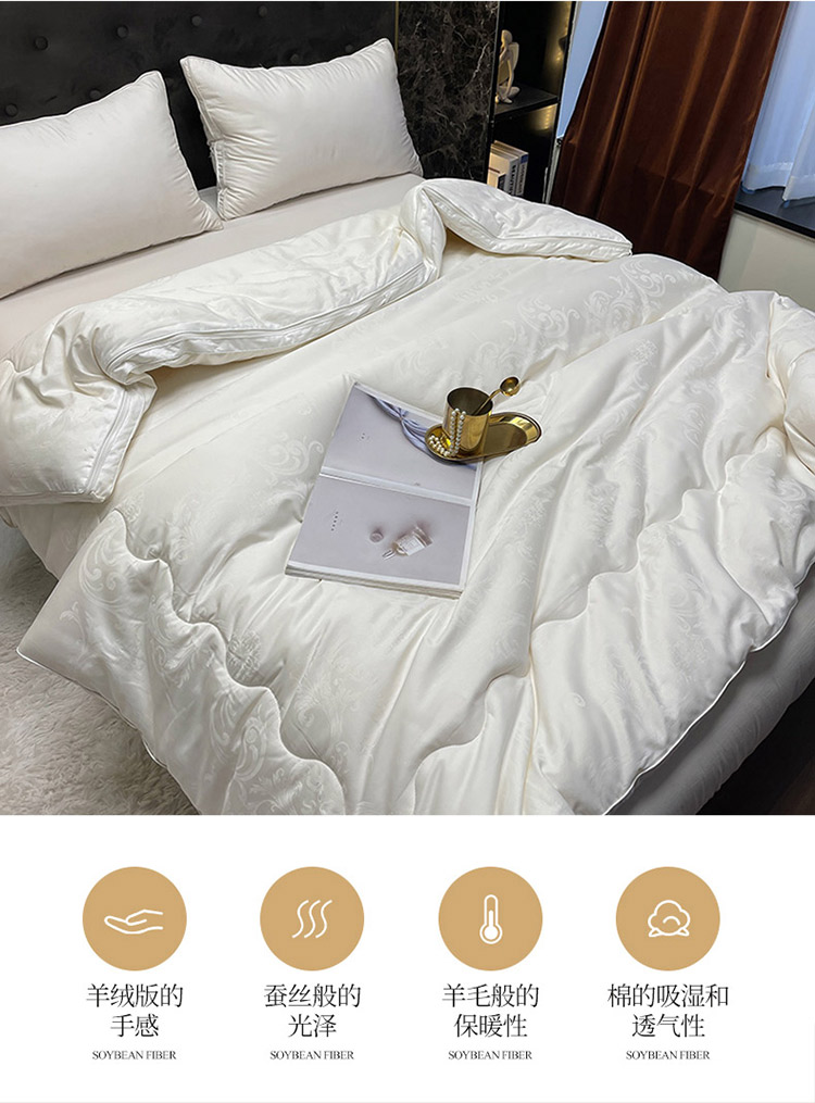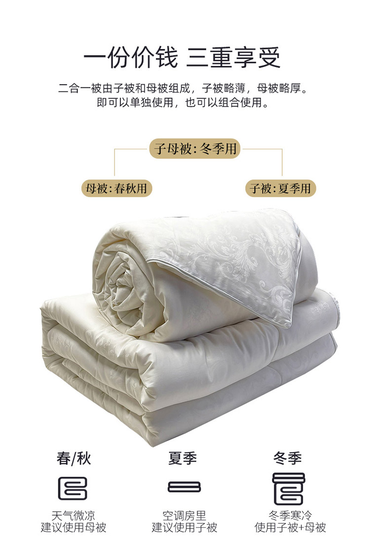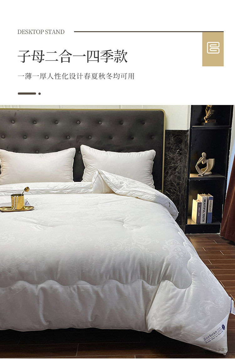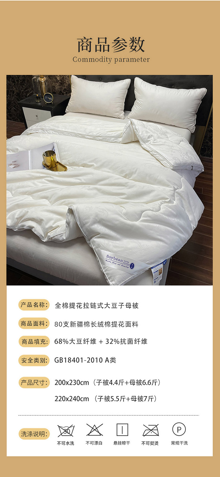 商品名称:紫乐家纺2024新款全棉纯棉提花拉链式大豆纤维子母被加厚冬被被子被芯 白色