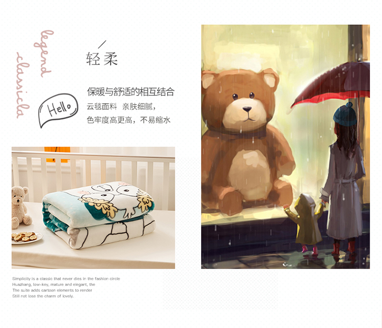 商品名称:凯轩毛毛毯毯子 加大加厚儿童云毛毯毯子 围巾熊浅绿